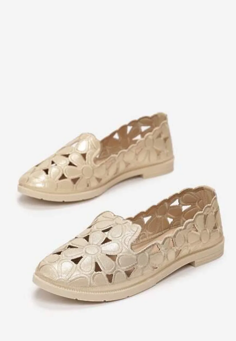 Mokasyny Acanophe na płaskim obcasie w dopasowanym odcieniu. Z niską cholewką i okrągłym noskiem, z ażurowymi wycięciami i nieregularną krawędzią. Wykonane z nabłyszczanej ekoskóry. Świetnie będą wyglądać zarówno w duecie ze spodniami, jak i sukienkami!