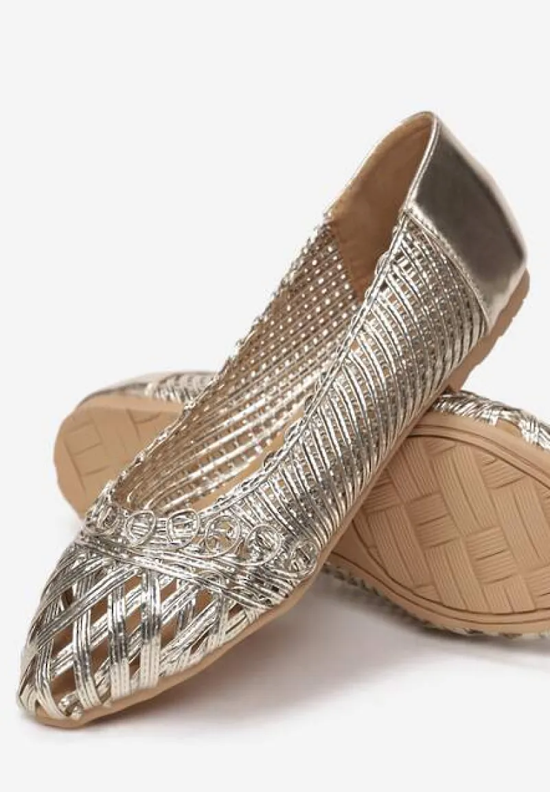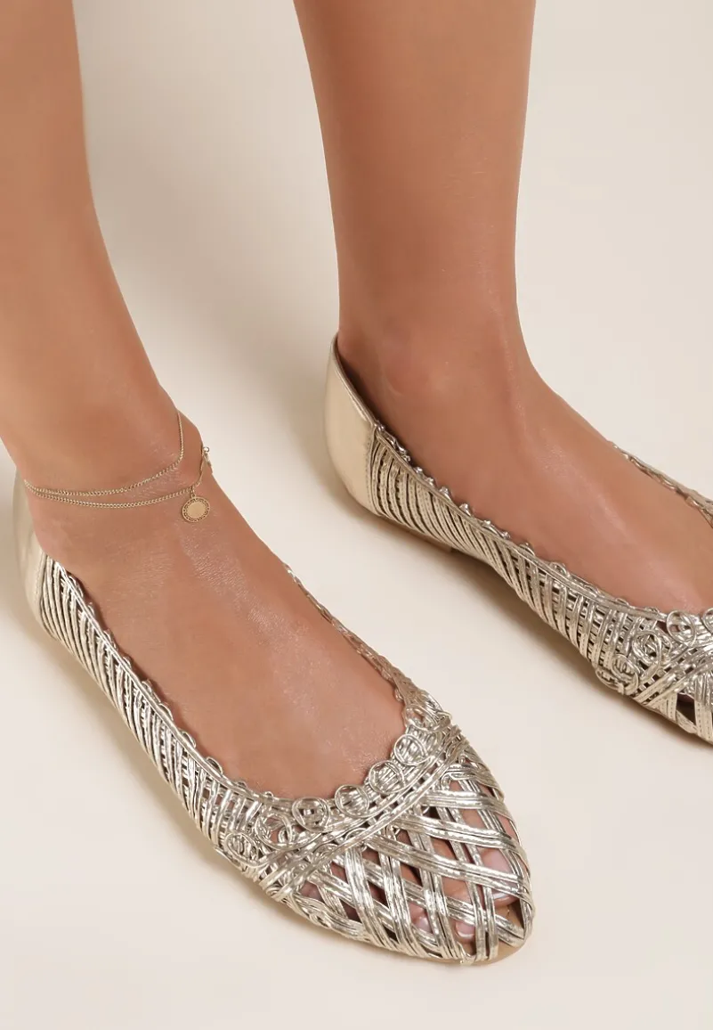 Balerinki Gumption wsuwane, na płaskim obcasie. Dekorowane plecionkami, wykonane z ekoskóry. Nosek w kształcie migdałka. UWAGA: rekomendujemy wybór rozmiaru o 1 mniejszego.