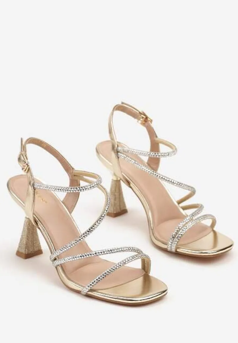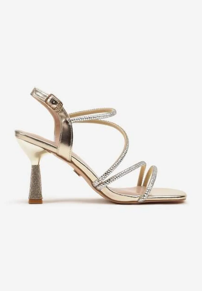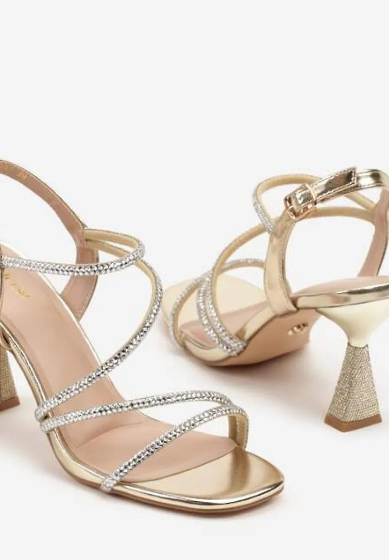 Złote Cyrkoniowe Sandały Vices na Stożkowym Obcasie Galitiela