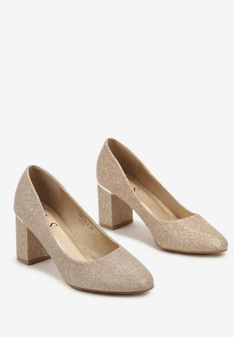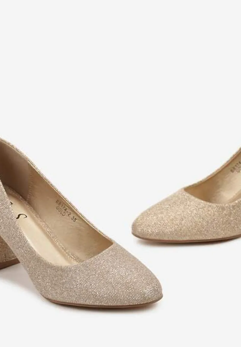 Złote Czółenka Ozdobione Brokatem na Słupku z Metaliczną Lamówką Ealira