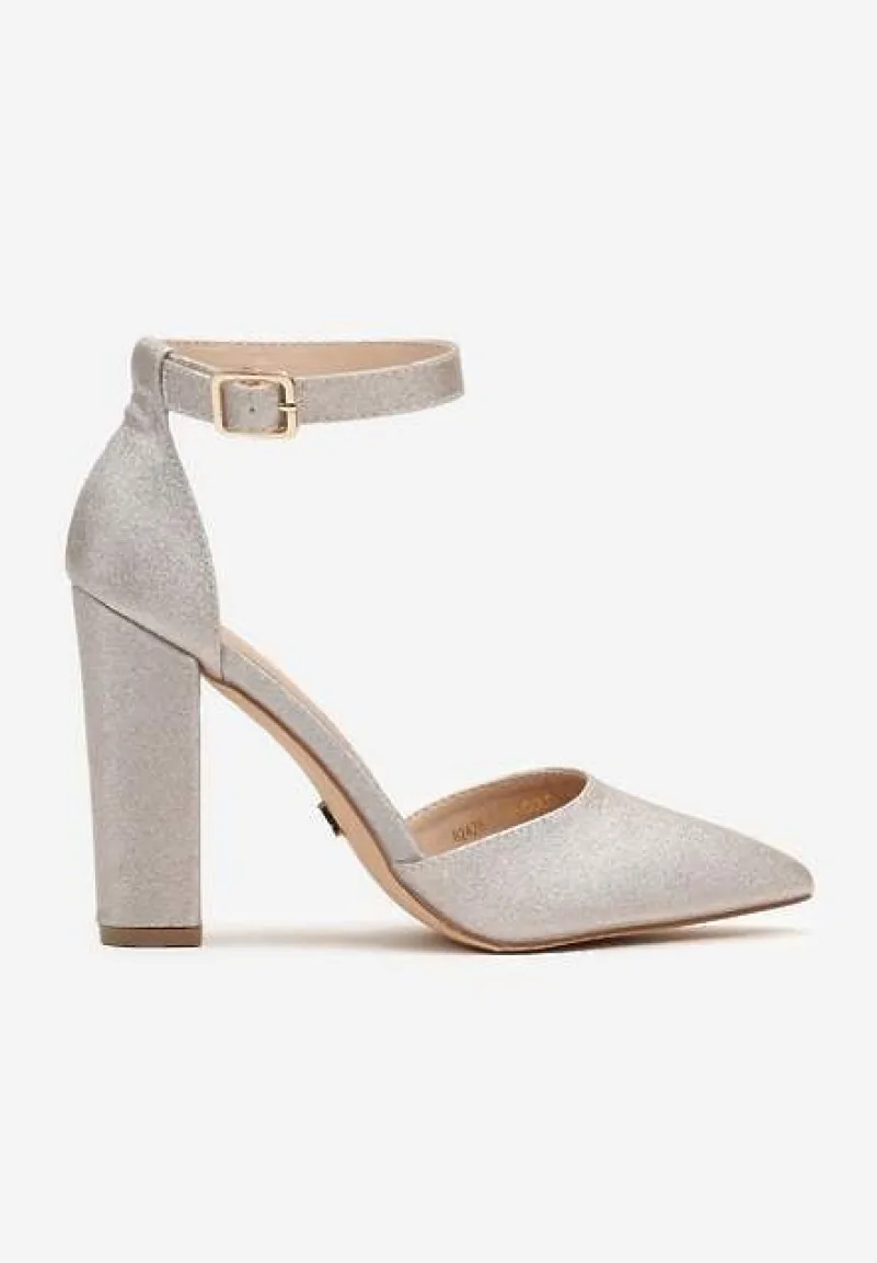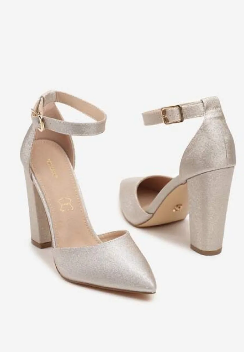 Złote Czółenka Vices na Słupku z Paskiem Wokół Kostki Izalithea
