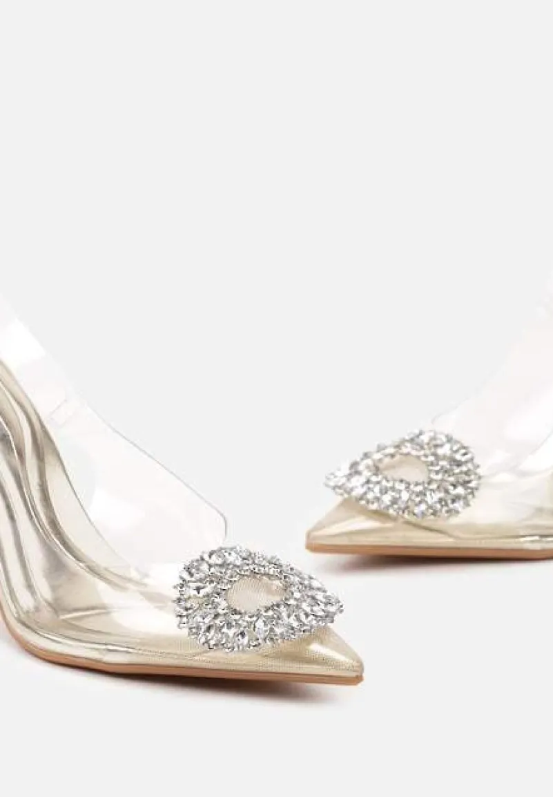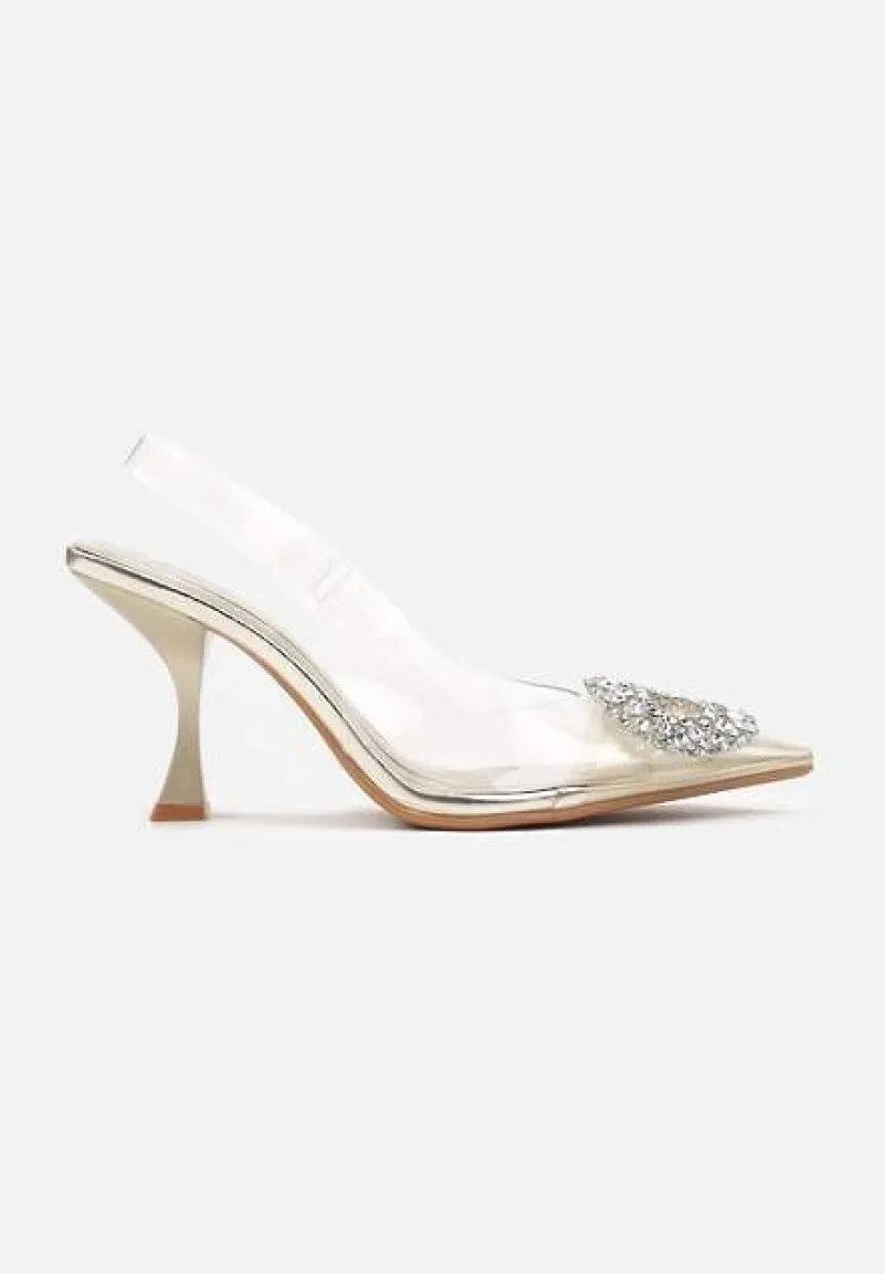 Czółenka Navieria z odkrytą piętą i transparentną cholewką to kwintesencja nowoczesnej elegancji, którą podkreśla delikatna szpilka. Przepiękne zdobienia z cyrkonii dodają im blasku, idealnie wpisując się w najnowsze trendy modowe. Te buty doskonale komponują się z wieczorowymi stylizacjami — wystarczy dodać klasyczną małą czarną i subtelne kolczyki, by olśnić na każdej imprezie.