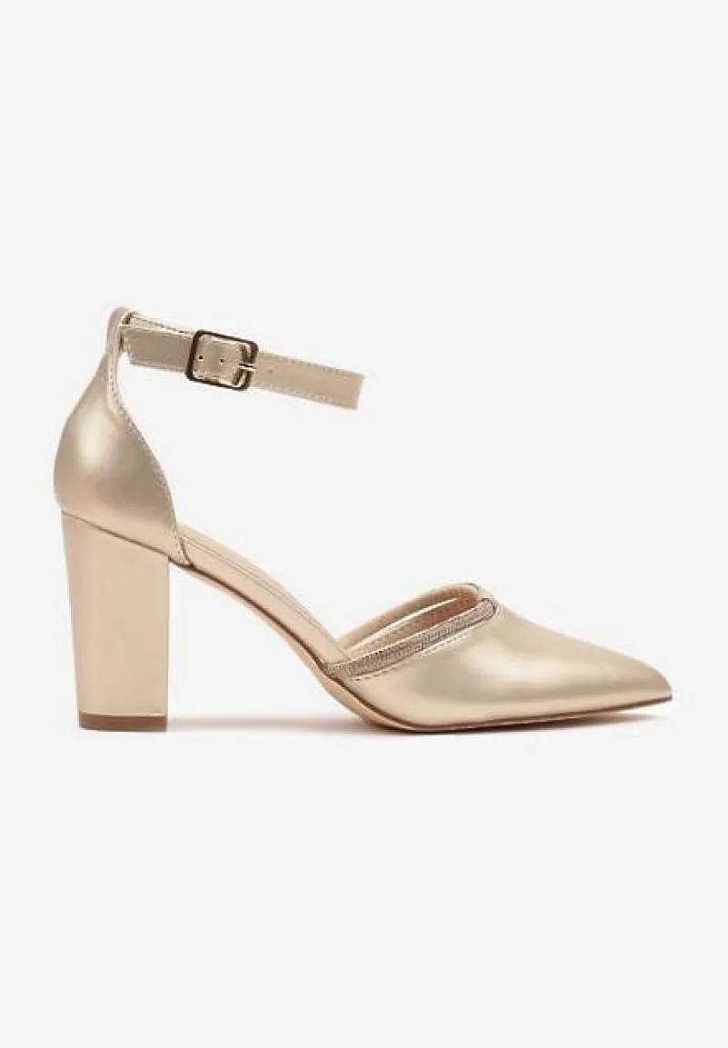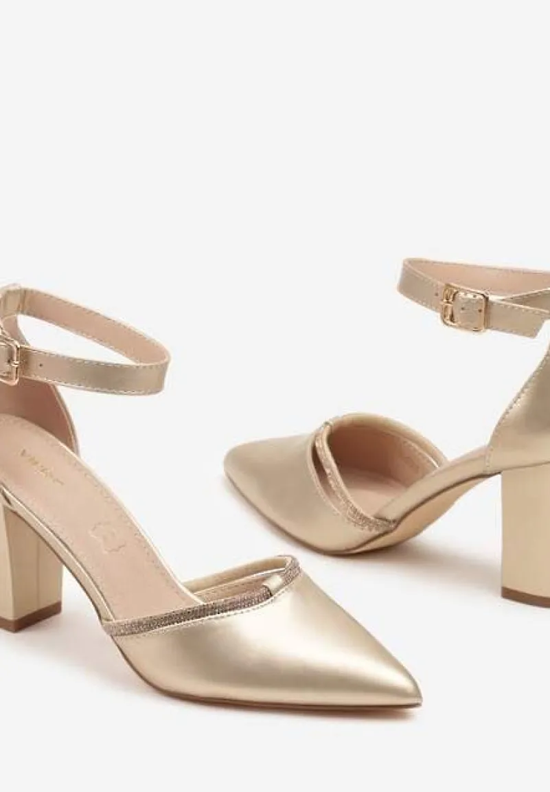 Złote Eleganckie Czółenka Vices ze Skórzaną Wkładką i Cyrkoniami Sarirra