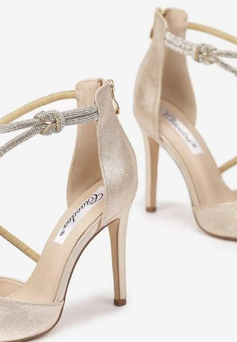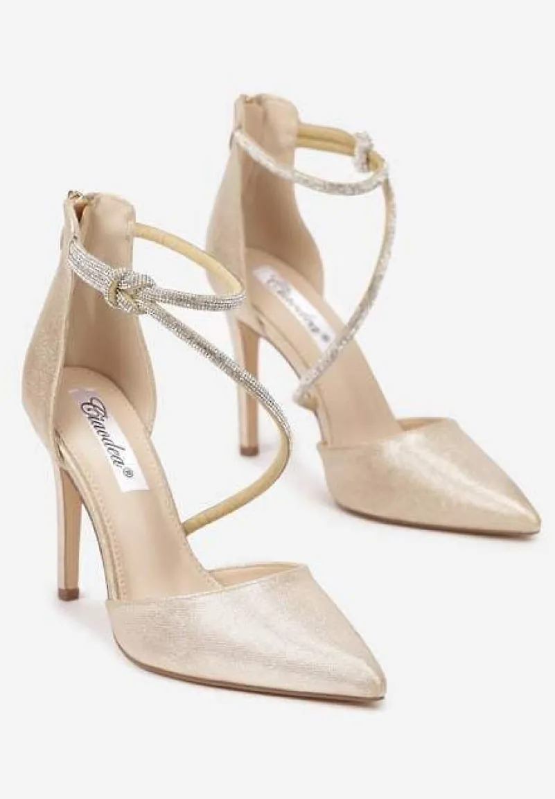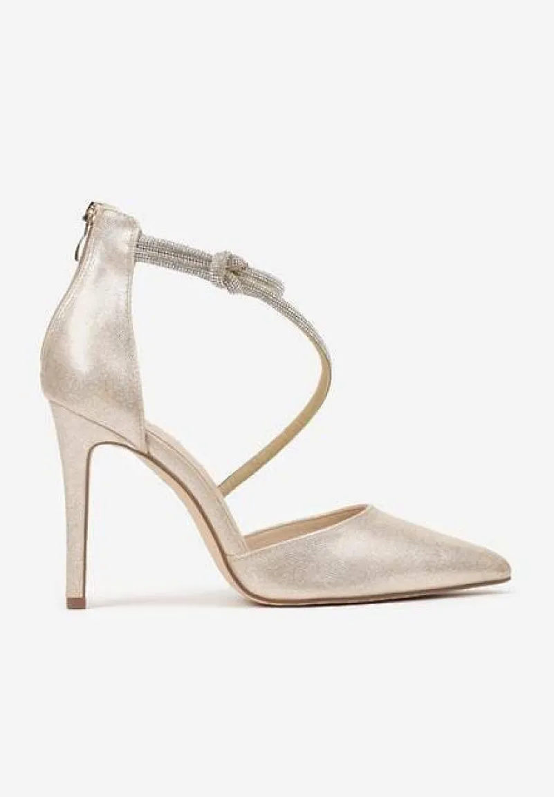 Złote Eleganckie Szpilki z Cyrkoniowymi Paskami Alennia