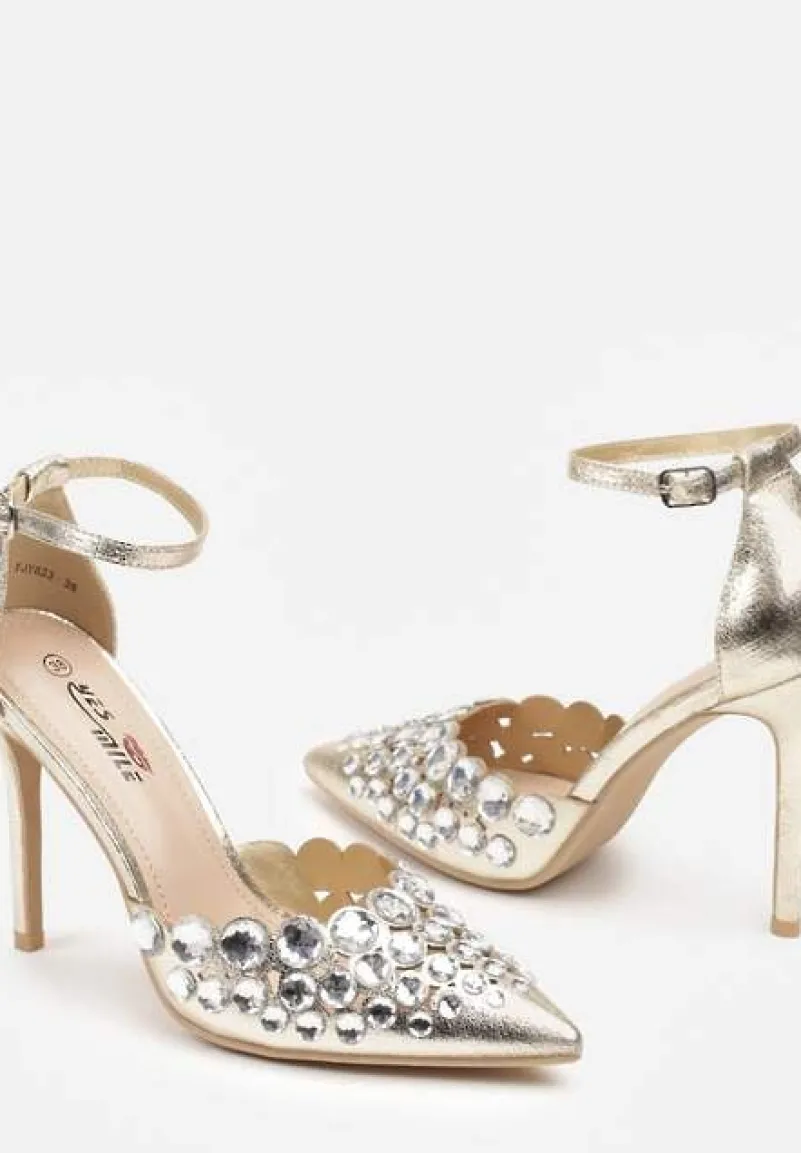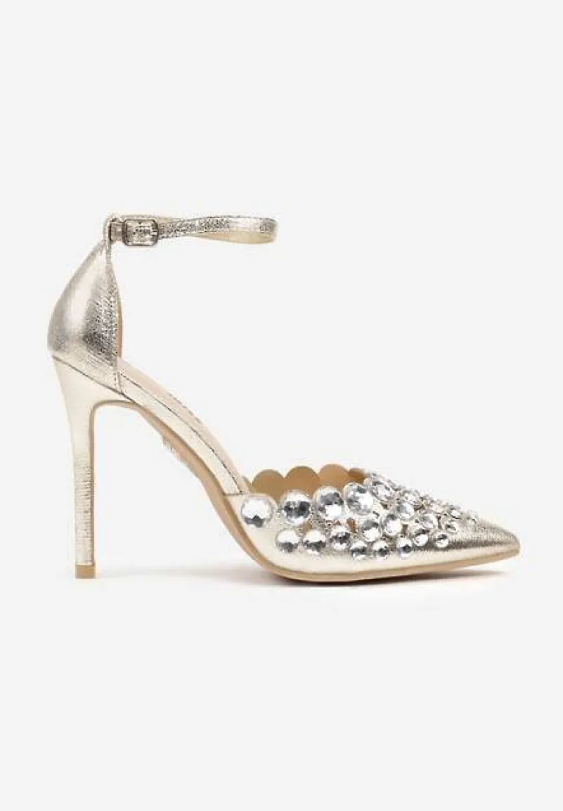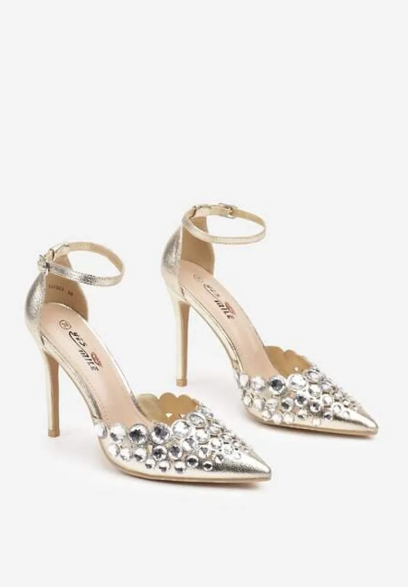 Złote Eleganckie Szpilki z Ozdobnymi Cyrkoniami Zennael