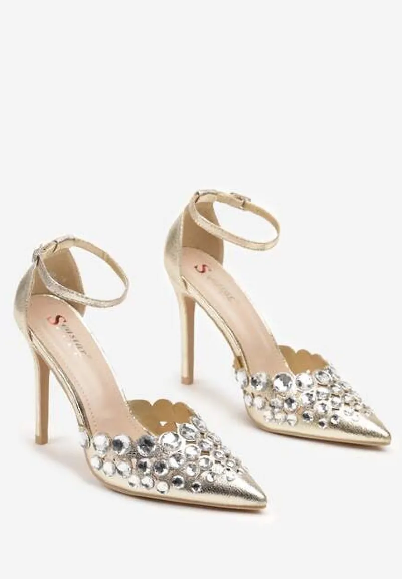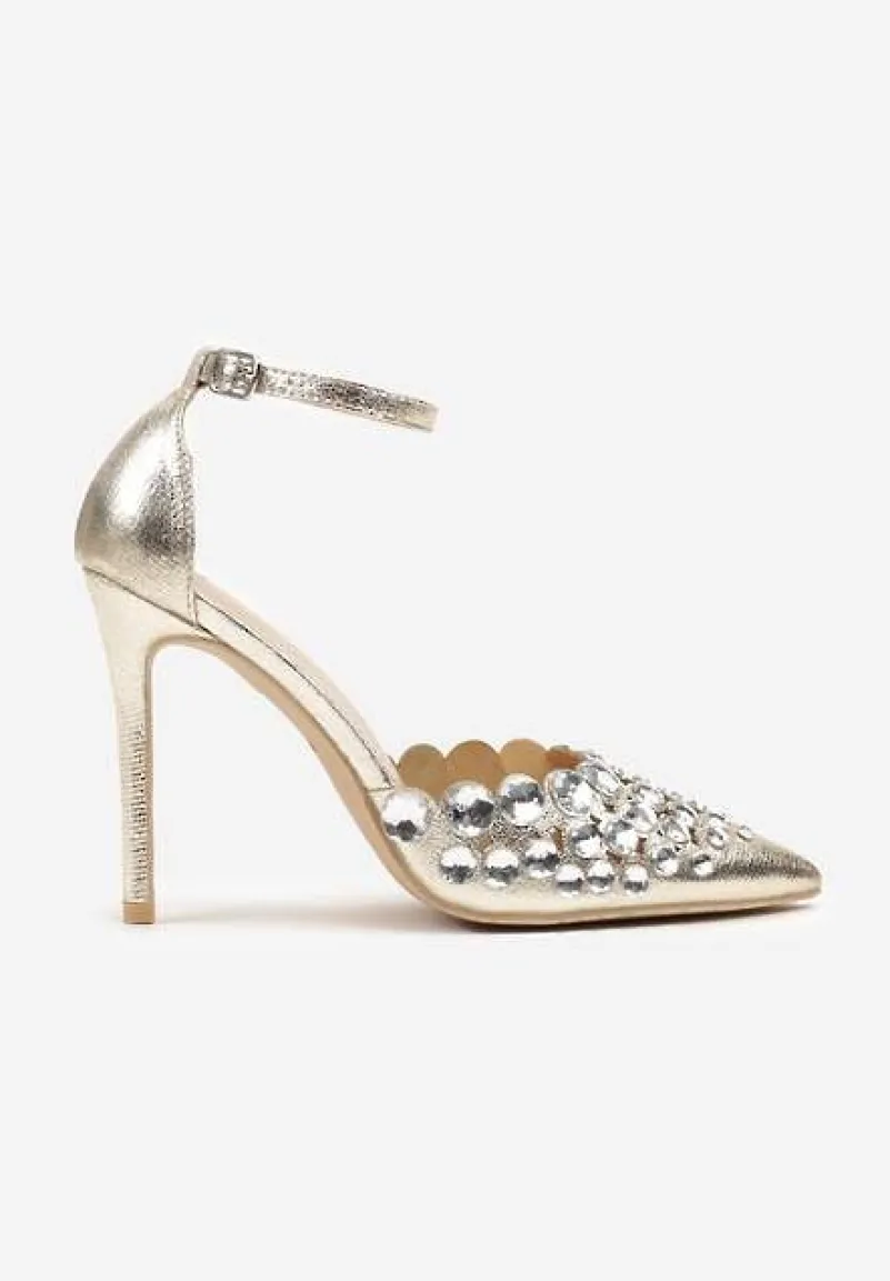 Złote Eleganckie Szpilki z Platformą i Cyrkoniami Grelesi