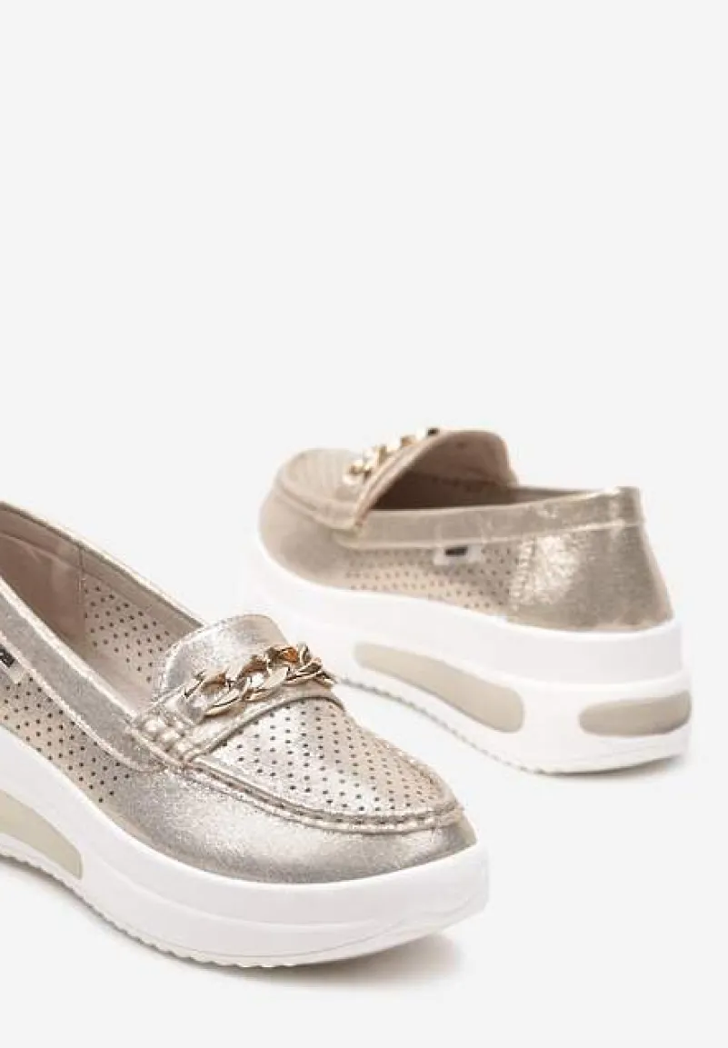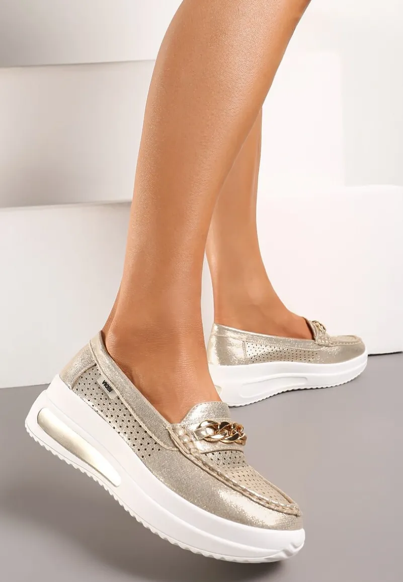 Mokasyny Himenna to kwintesencja stylu dla pewnych siebie kobiet, które pragną wygody bez rezygnacji z najnowszych trendów. Platforma dodaje kilka centymetrów wzrostu, zachowując przy tym stabilność kroku, a miękka wkładka gwarantuje komfort na każdym kroku. Zaokrąglony nosek i bezproblemowe wsuwanie stóp to praktyczne rozwiązania, cenione przez miłośniczki miejskiego szyku.