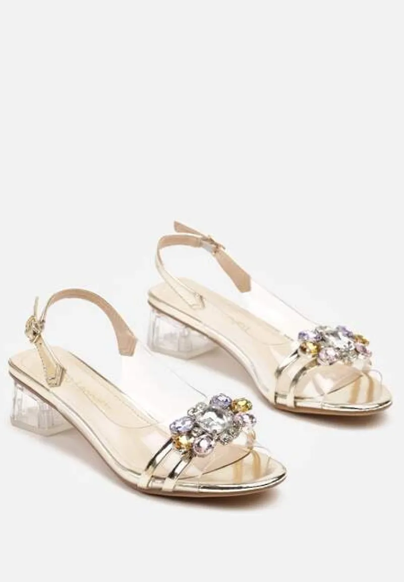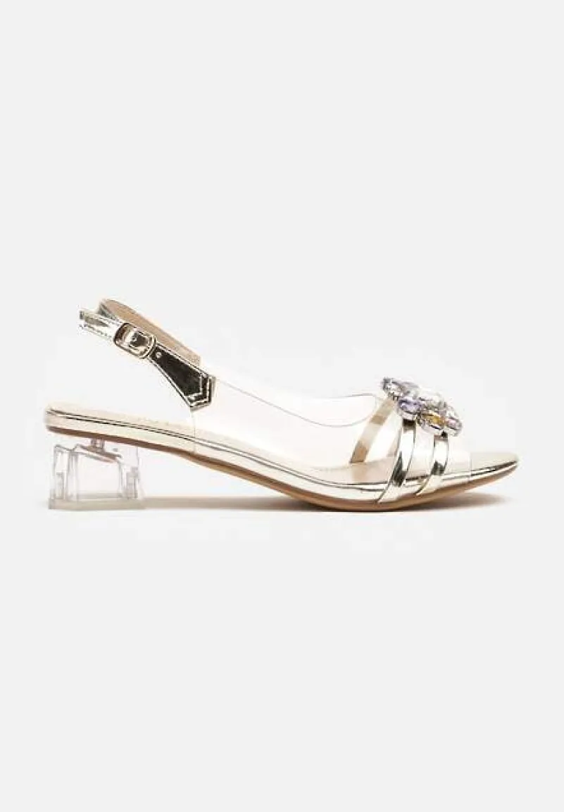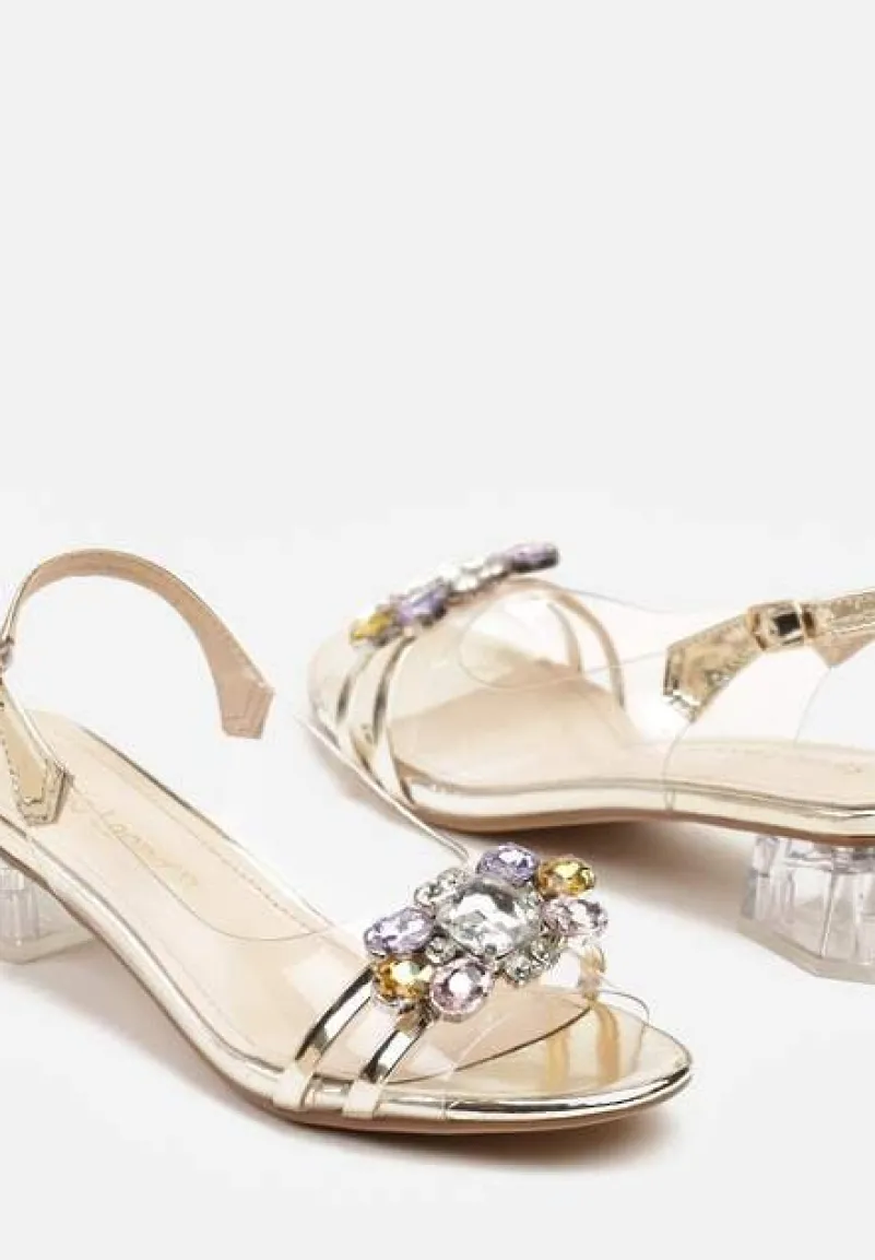 Złote Przezroczyste Sandały na Słupku z Cyrkoniowym Zdobieniem Senalisea