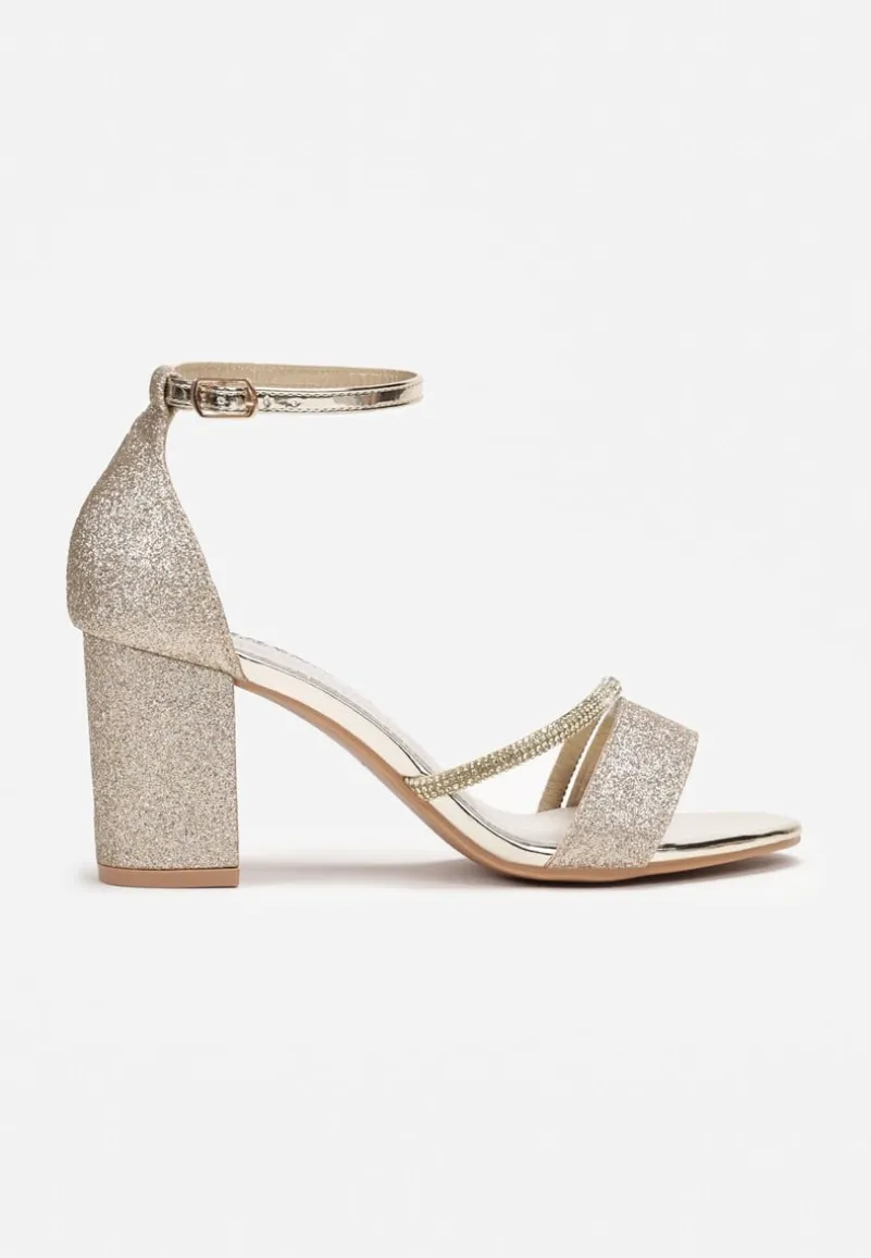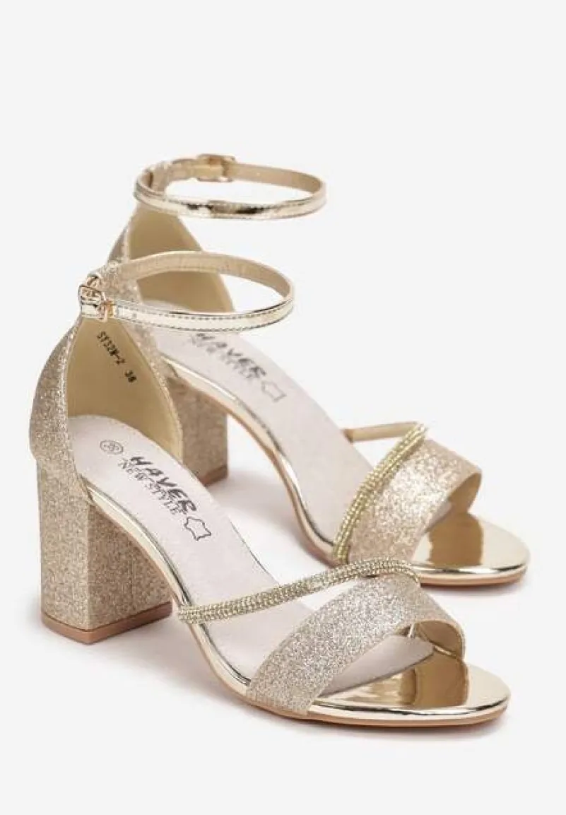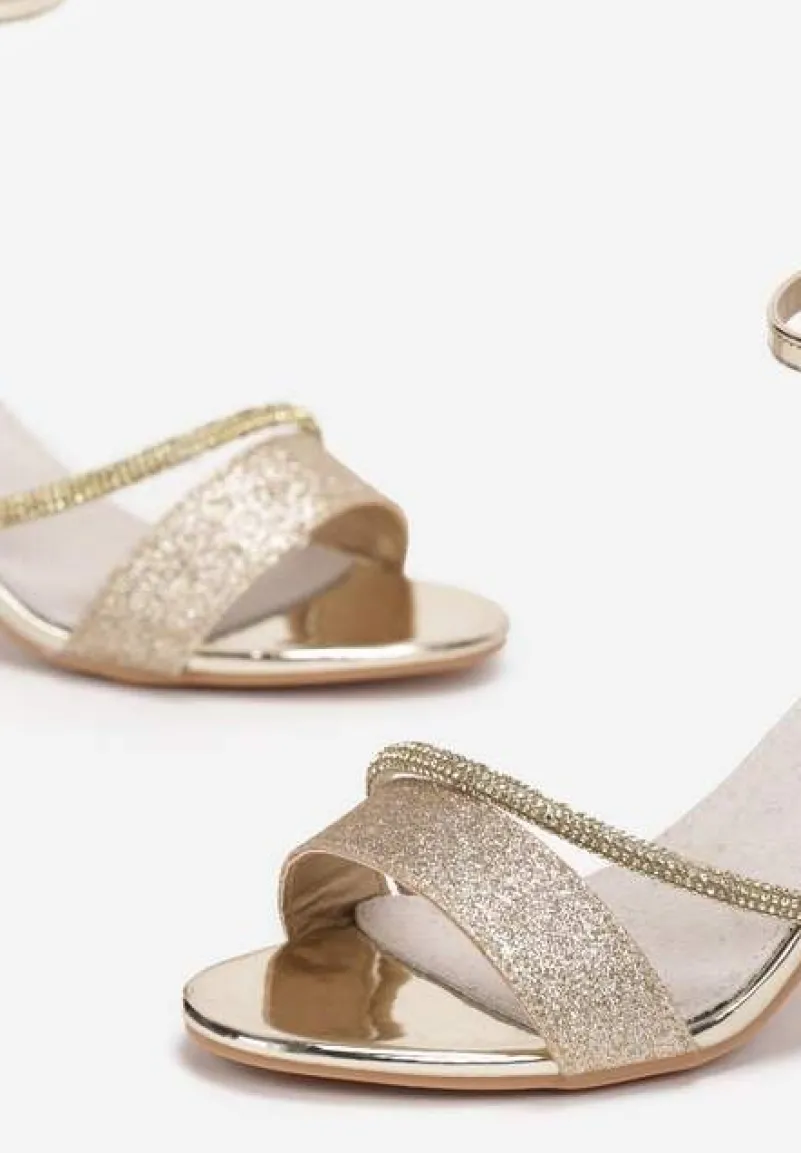 Złote Sandały Brokatowe na Słupku w Cyrkonie Tola