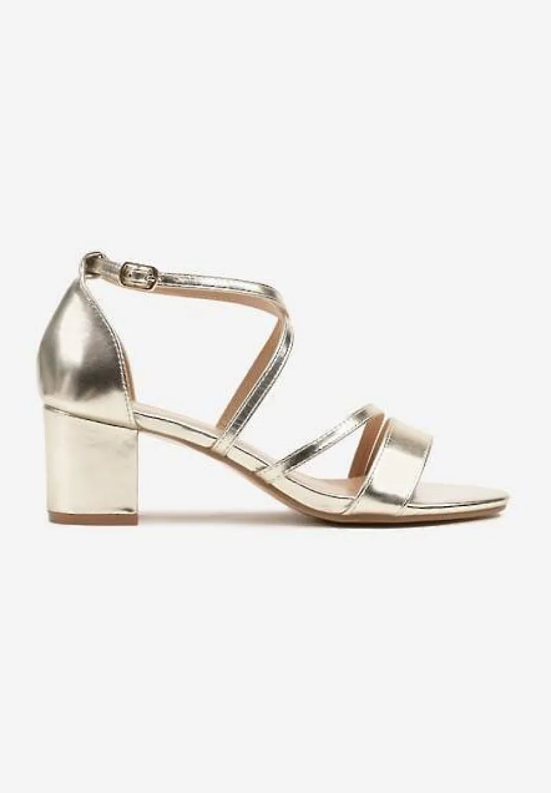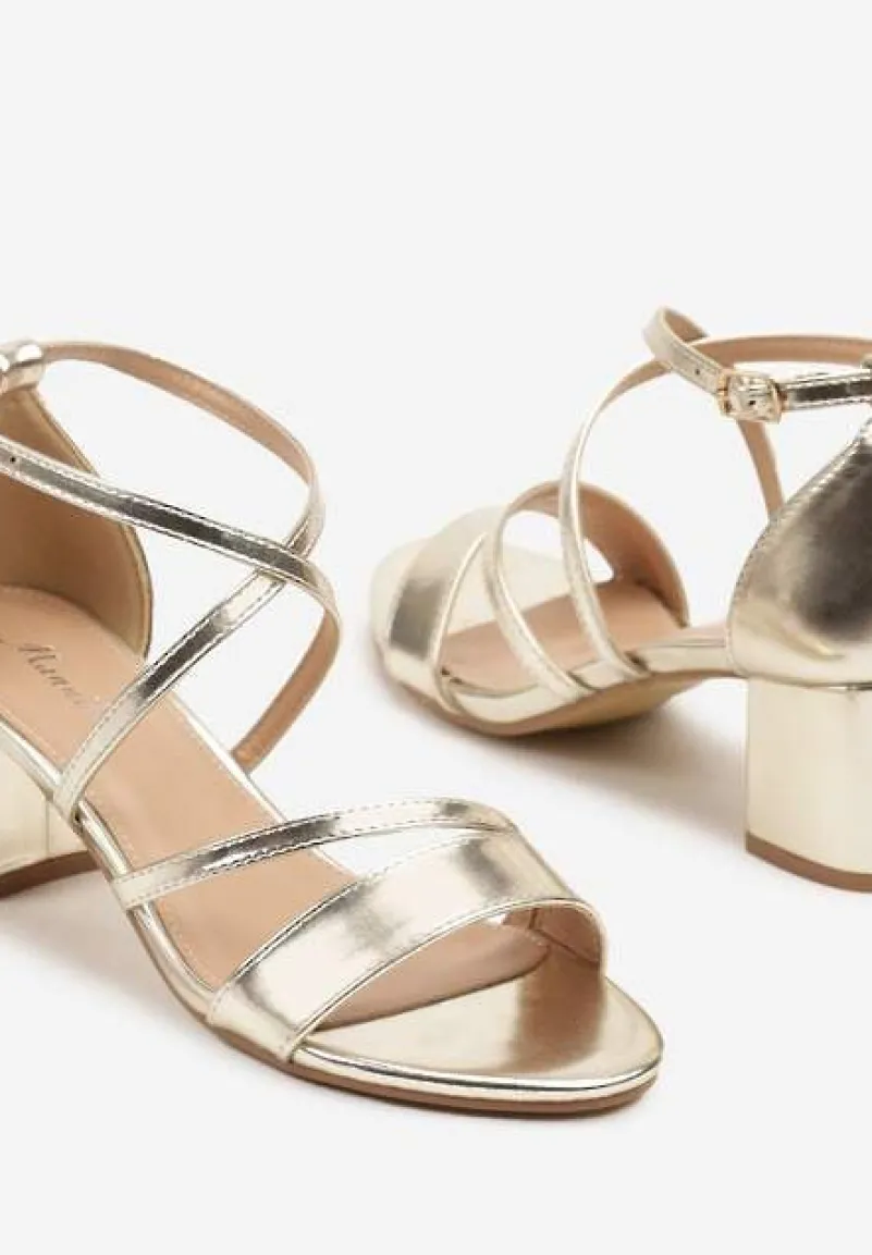 Złote Sandały na Niskim Obcasie z Eleganckimi Paseczkami Tillite