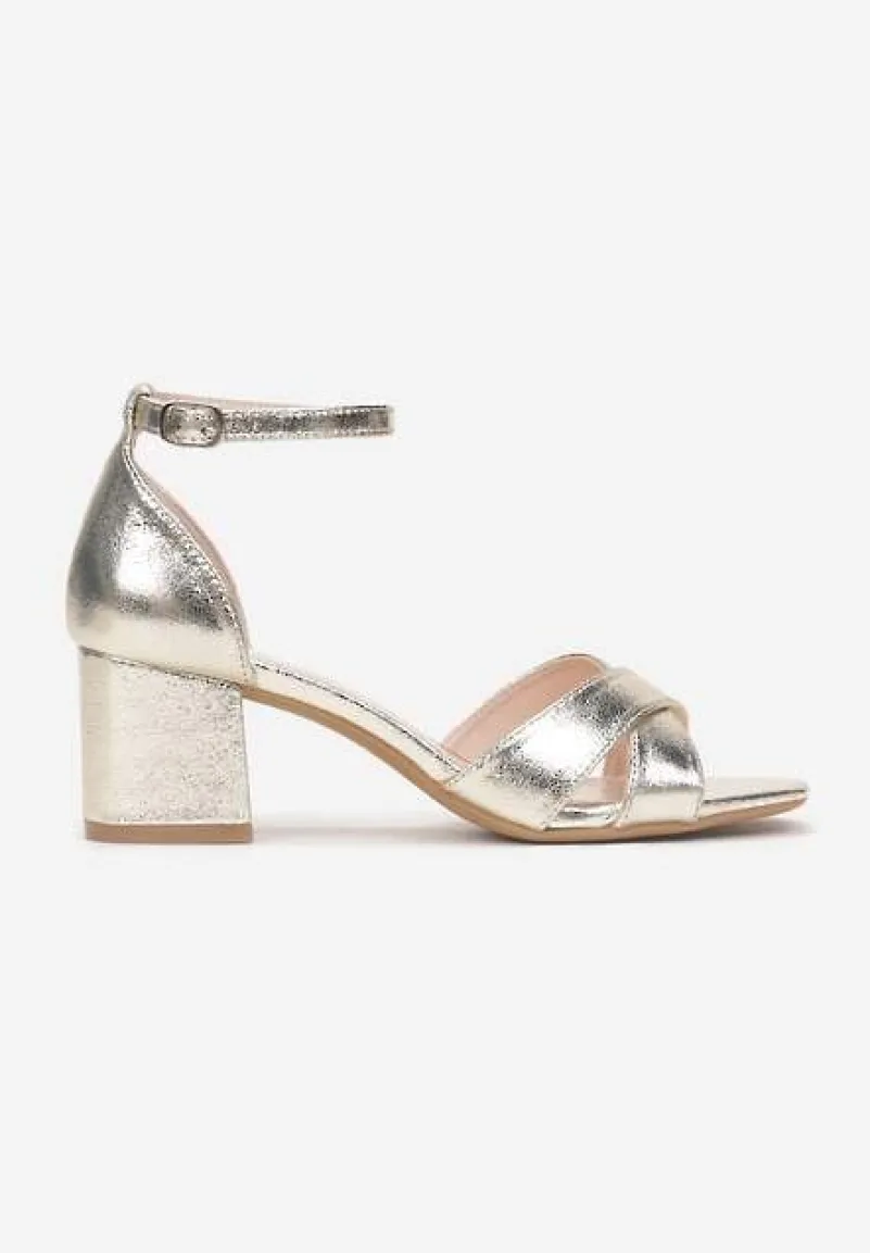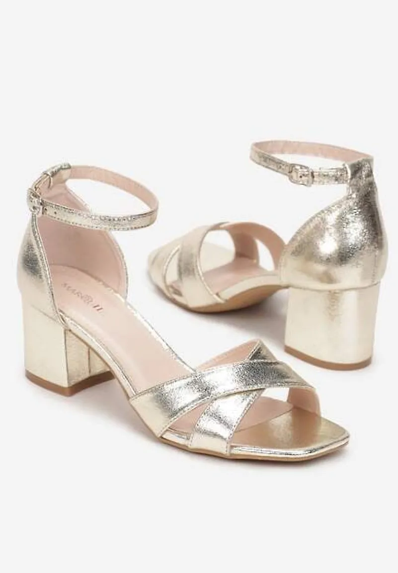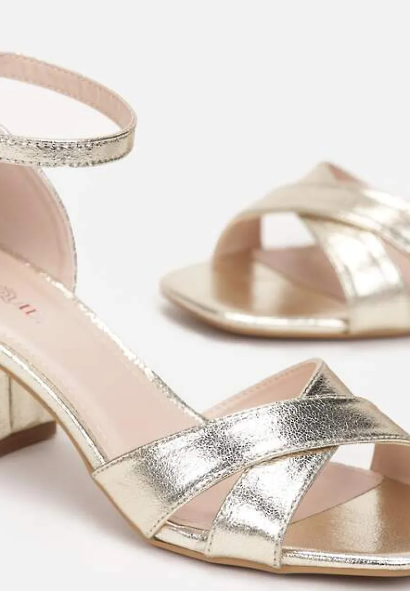 Złote Sandały na Niskim Słupku z Paskami Caylor