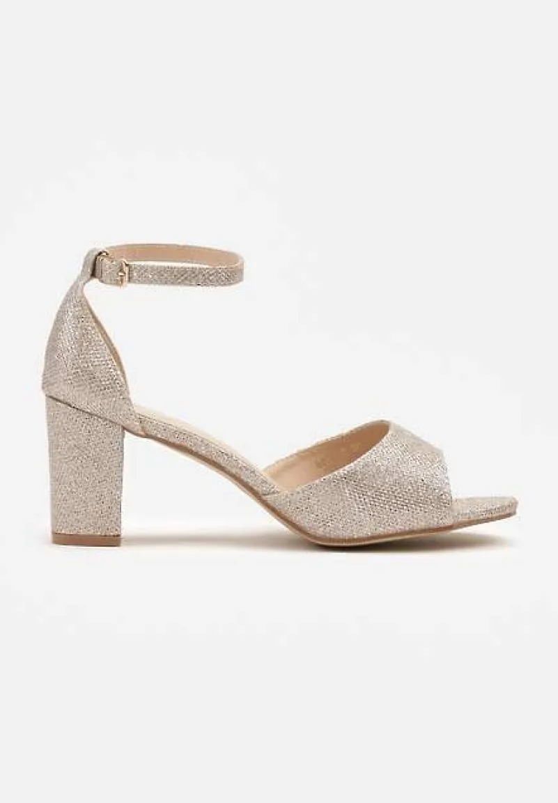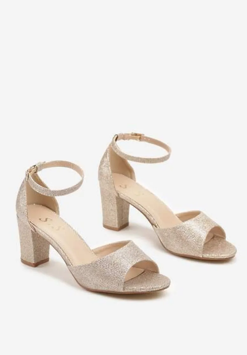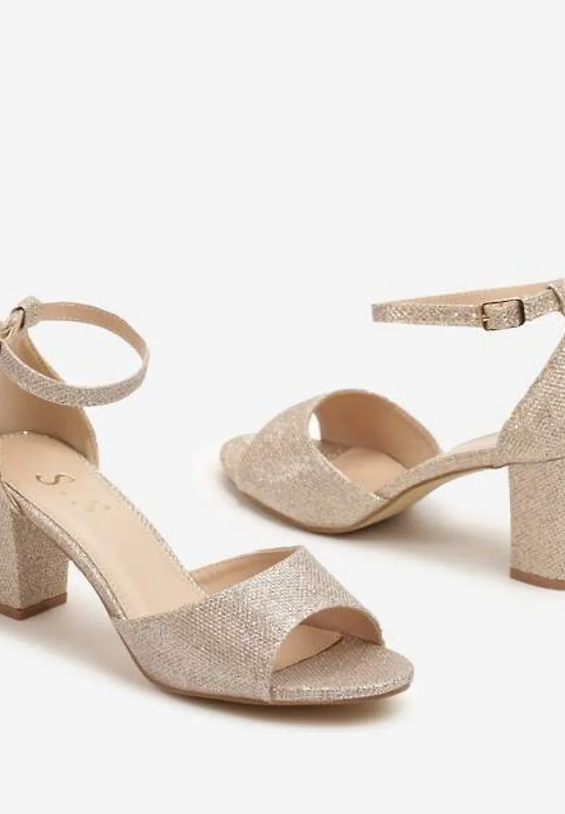 Złote Sandały na Obcasie Ozdobione Brokatem Selindrael
