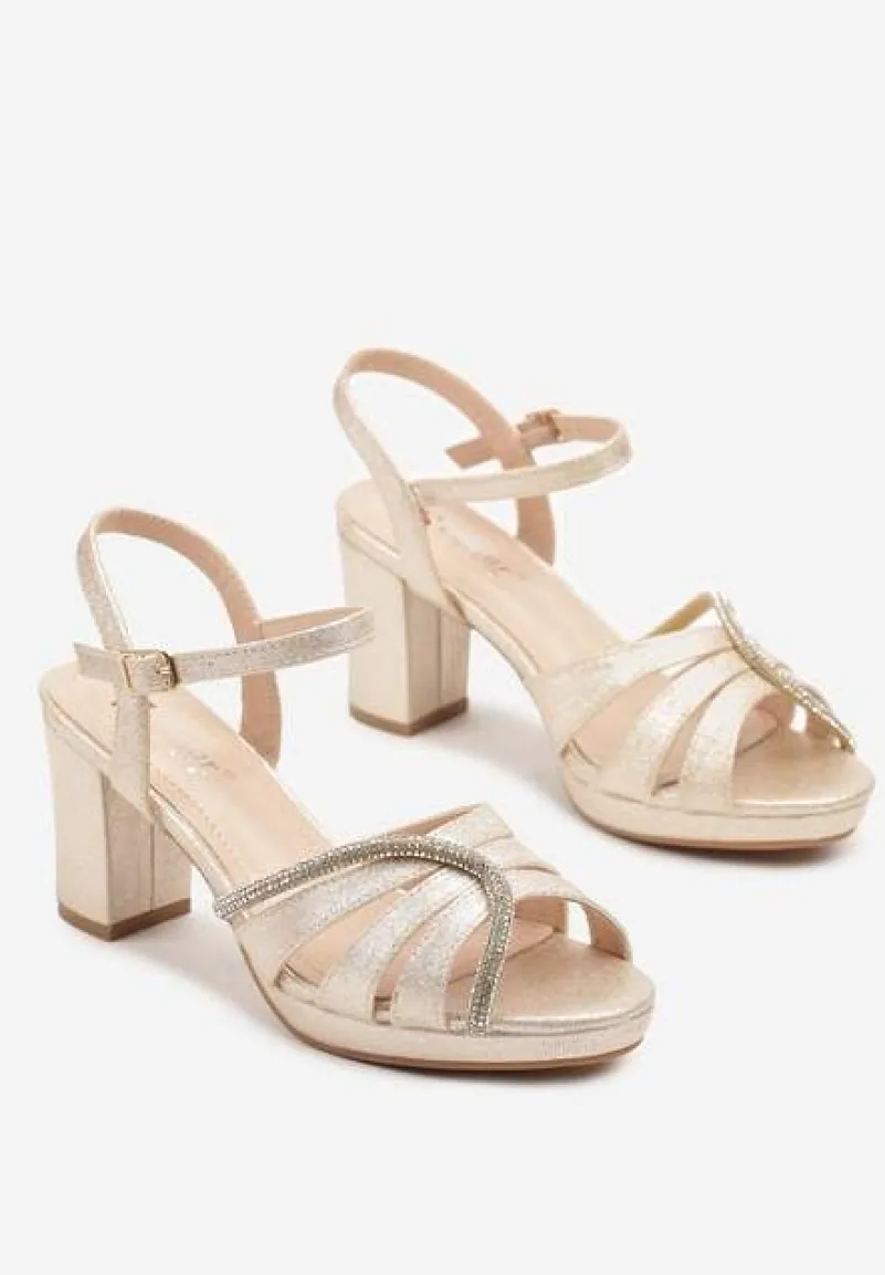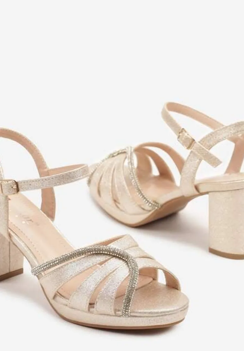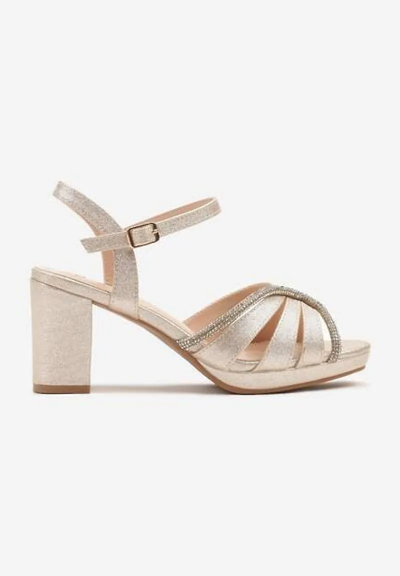 Złote Sandały na Słupku Ozdobione Brokatem i Cyrkoniami Galvisa