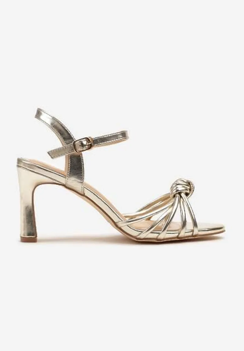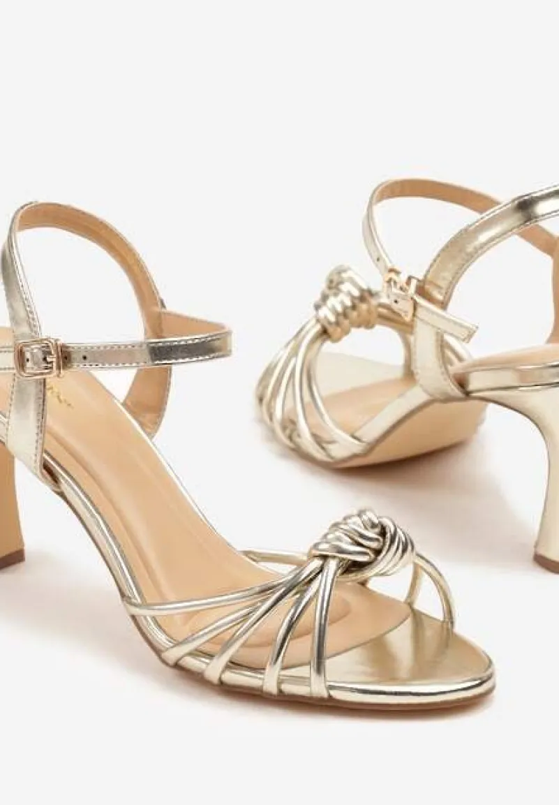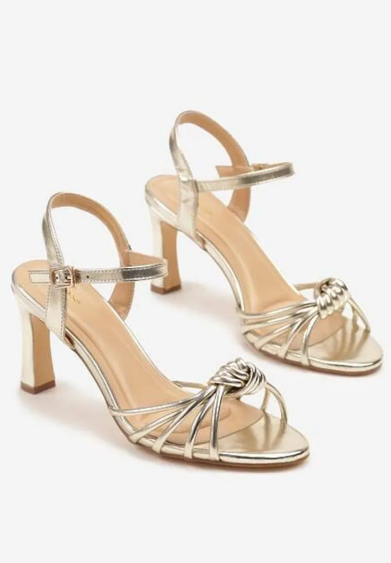 Złote Sandały na Słupku Vices Ozdobione Supełkiem Filarina