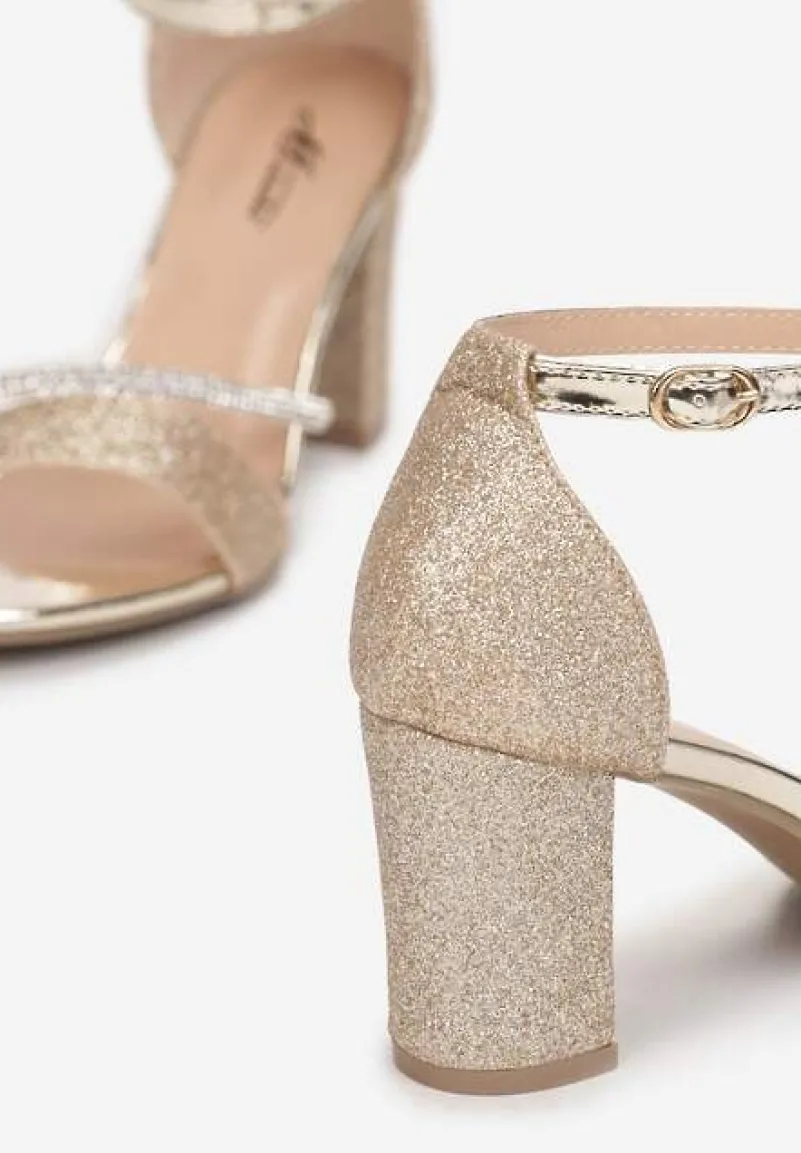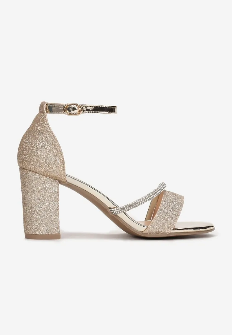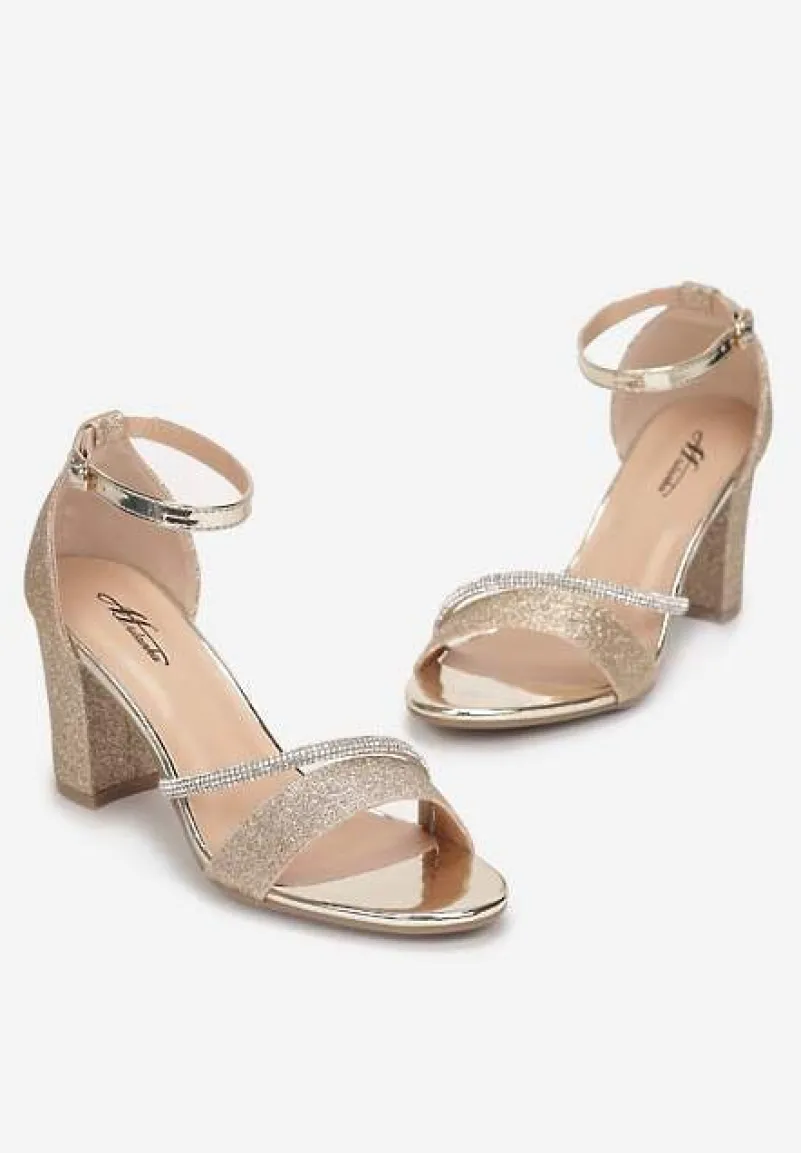 Złote Sandały na Słupku z Paskiem z Cyrkonii Leshil
