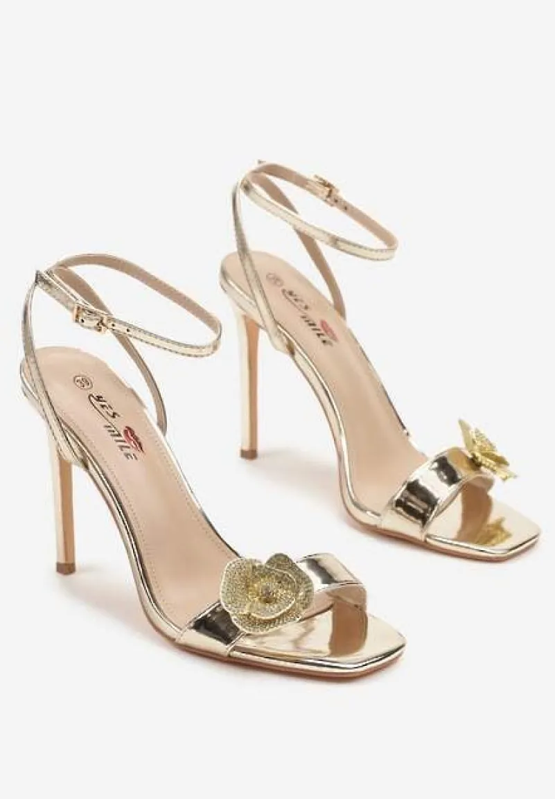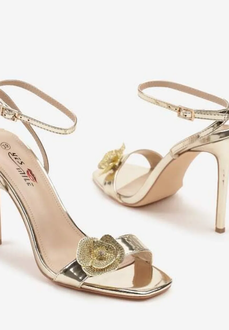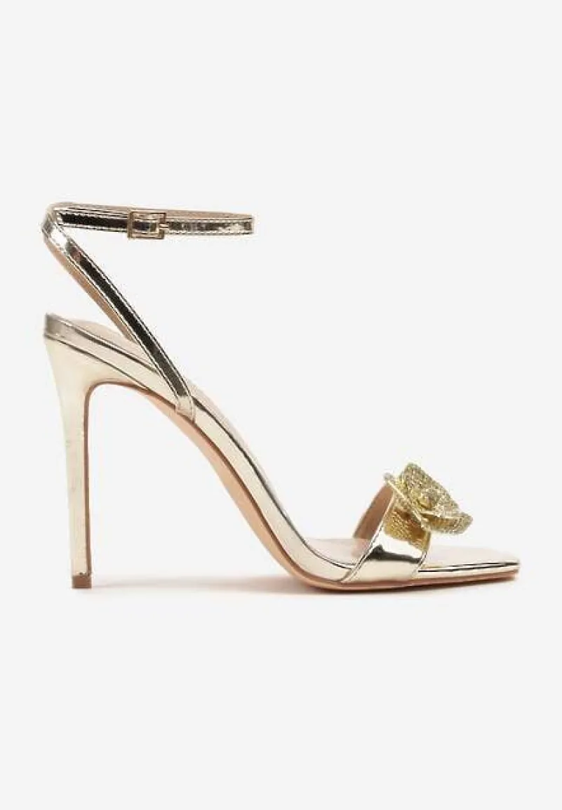 Złote Sandały na Szpilce Ozdobione Cyrkoniowymi Aplikacjami 3D Ranqua