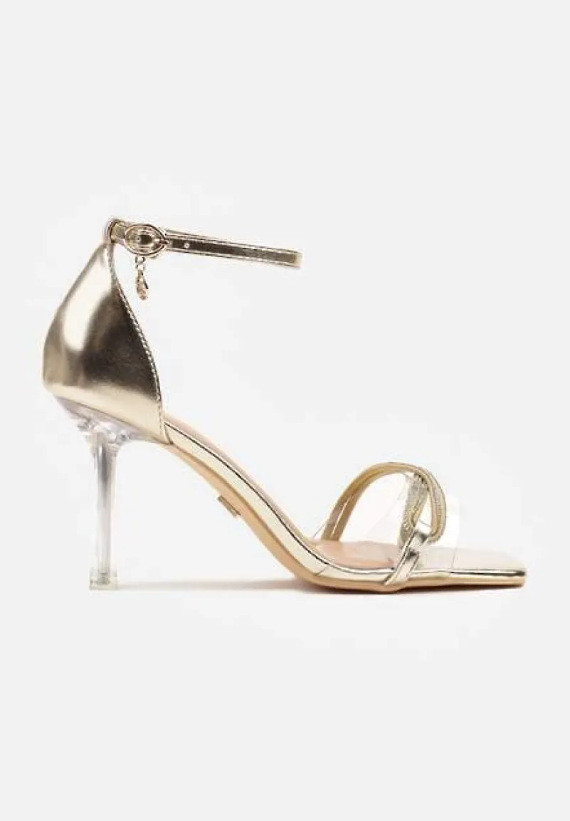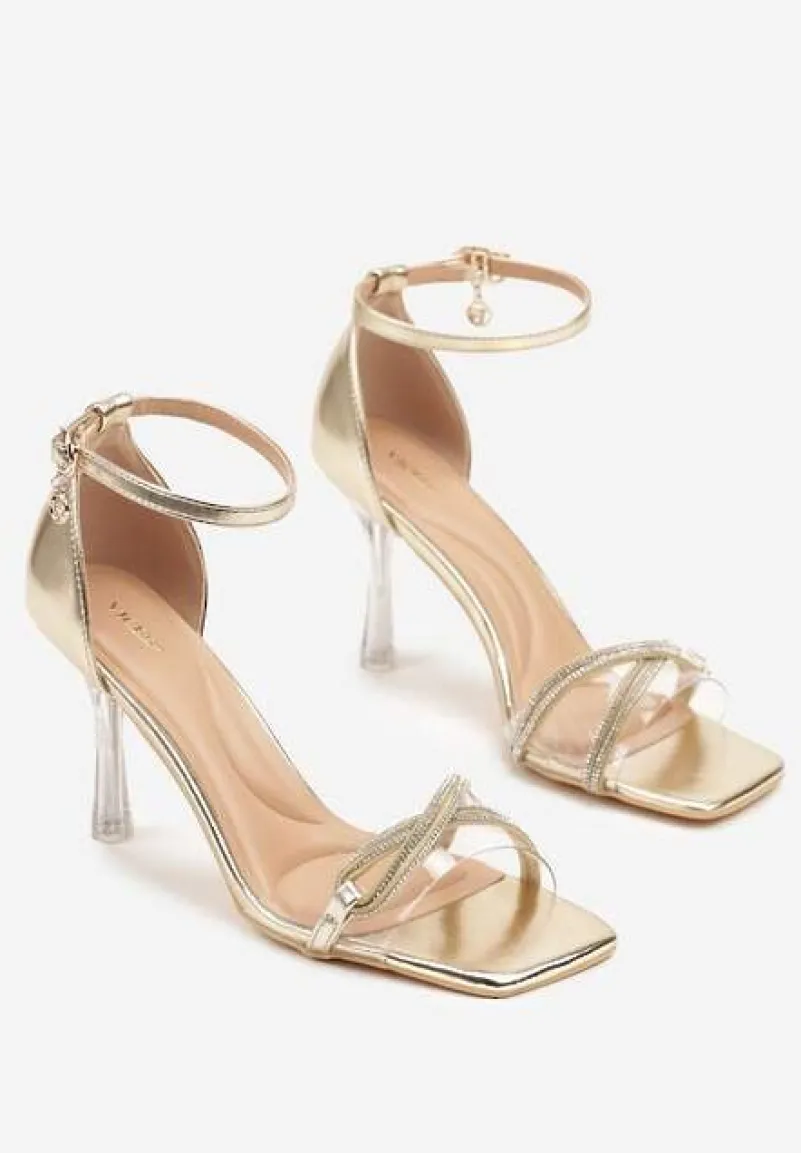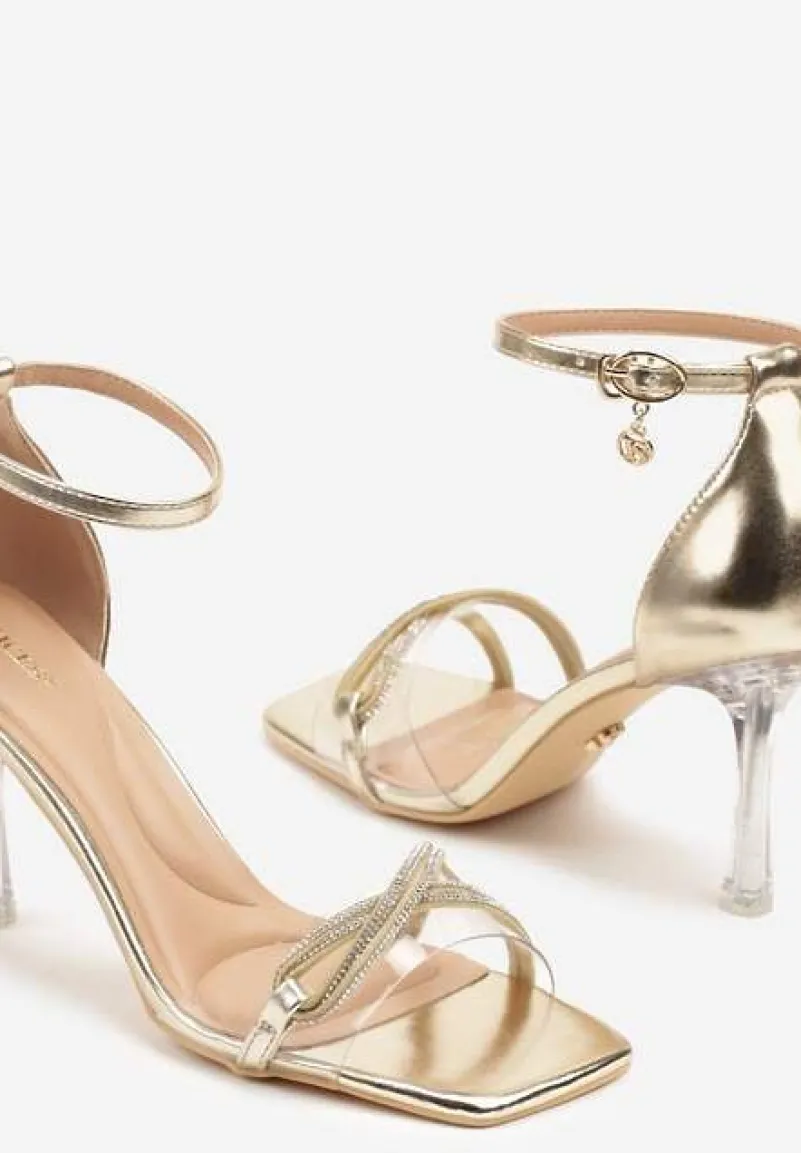 Złote Sandały na Szpilce Vices Ozdobione Paskami Dorotina