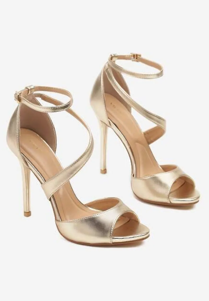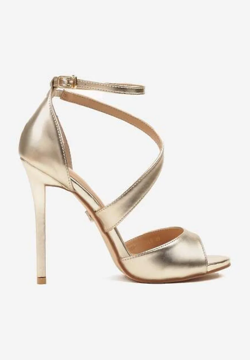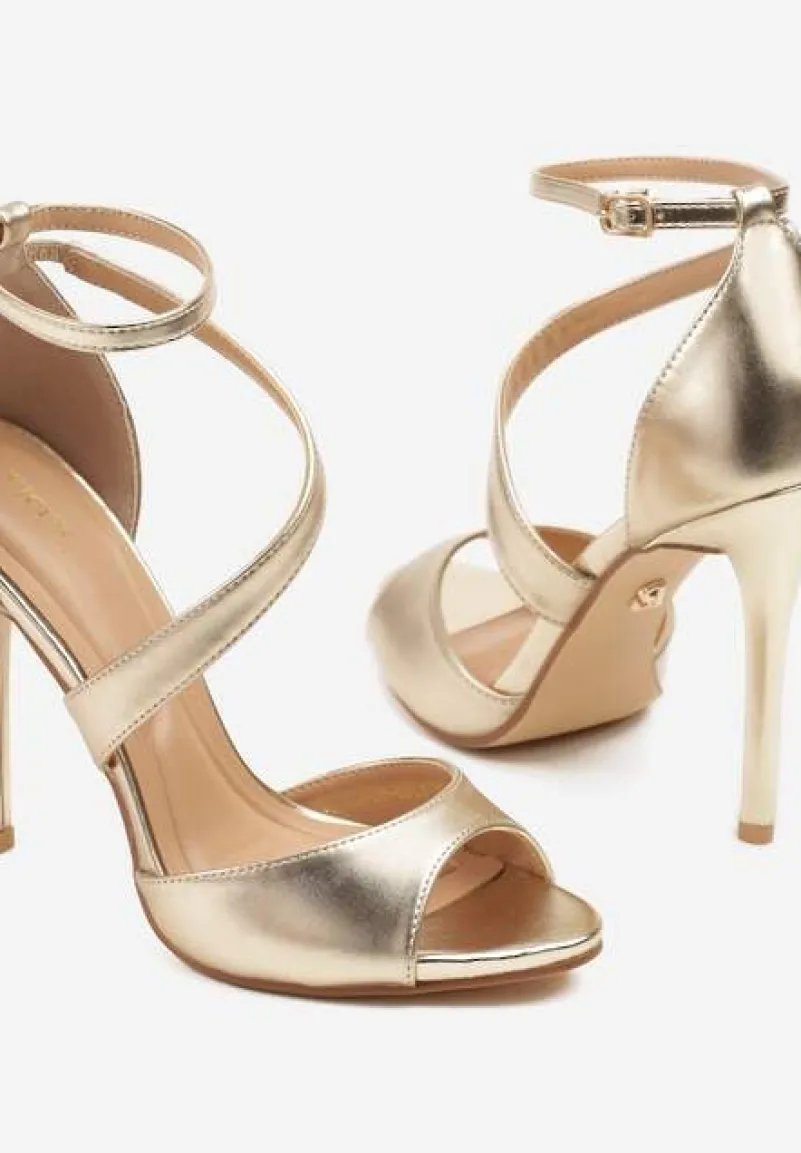 Złote Sandały na Szpilce Vices Ozdobione Paskami Sarariae