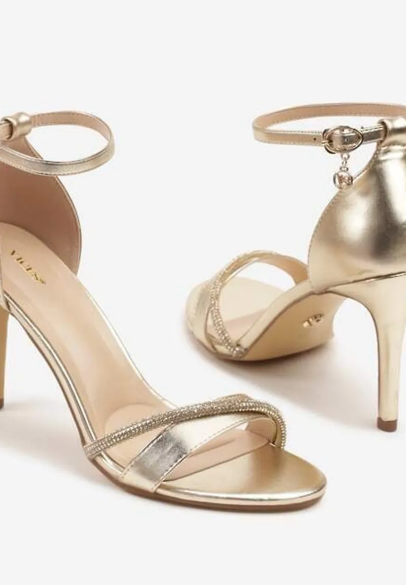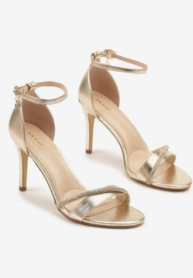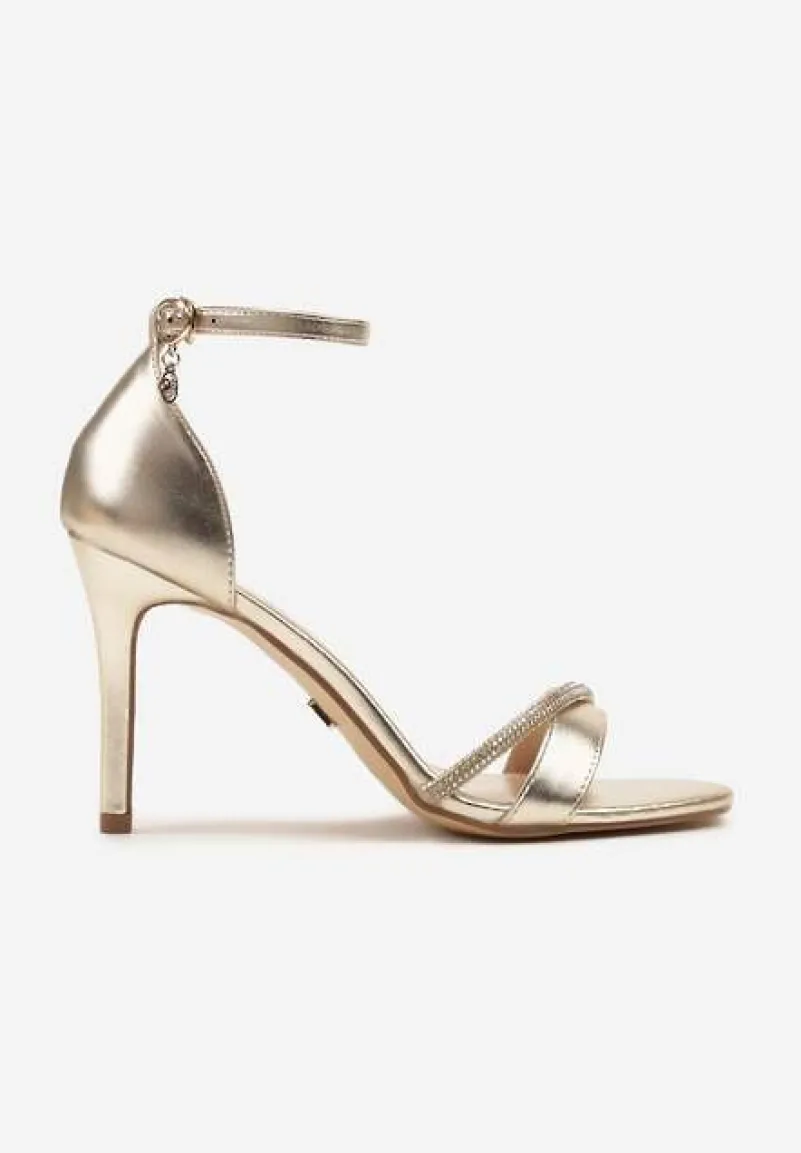 Złote Sandały na Szpilce Vices Ozdobione Paskiem z Cyrkonii Linarunia