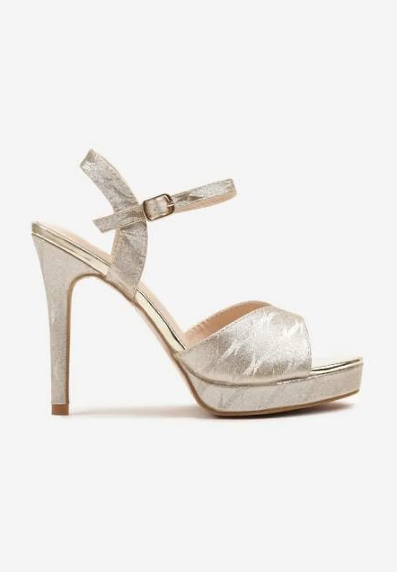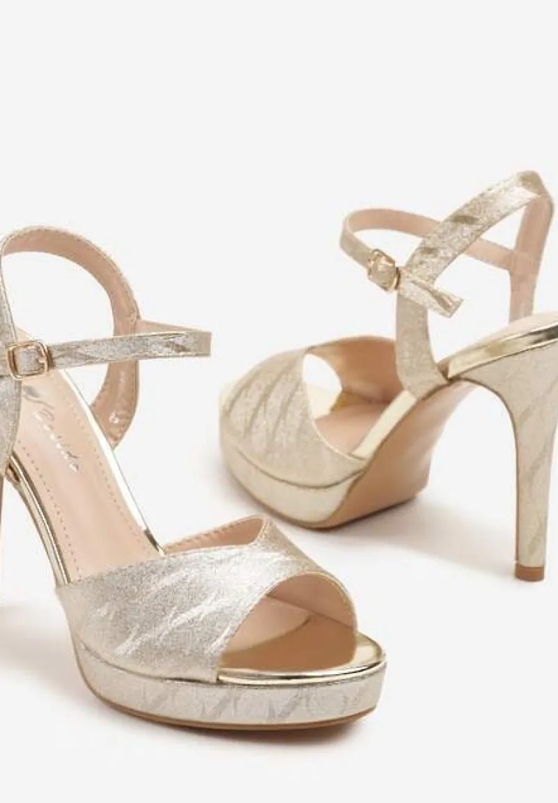 Złote Sandały Szpilki z Platformą w Abstrakcyjny Wzór Lisanitia