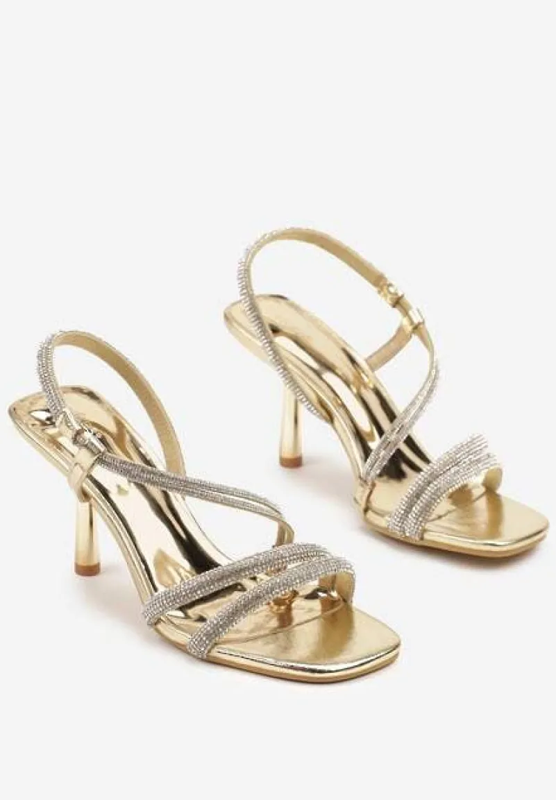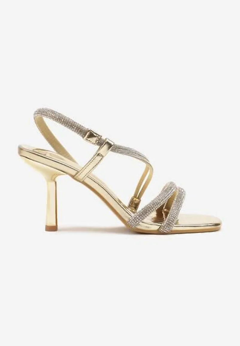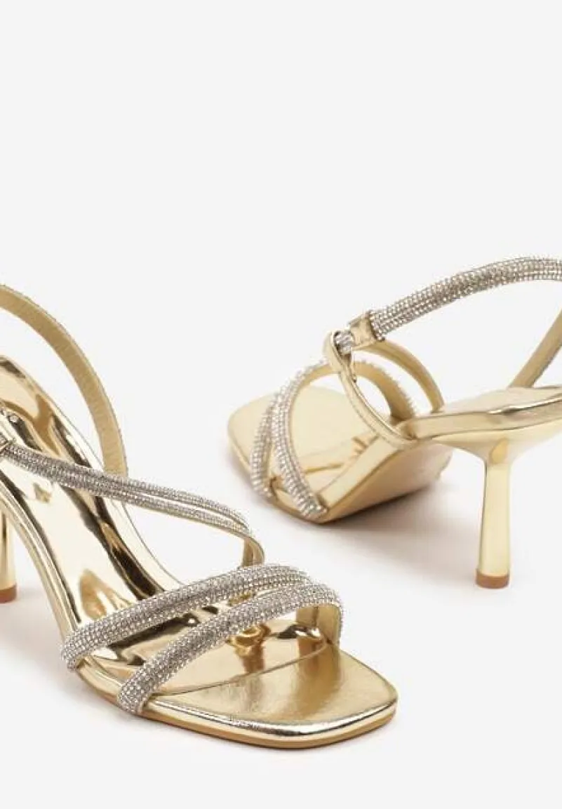 Złote Sandały Vices na Szpilce z Cyrkoniowymi Paskami Niladriella