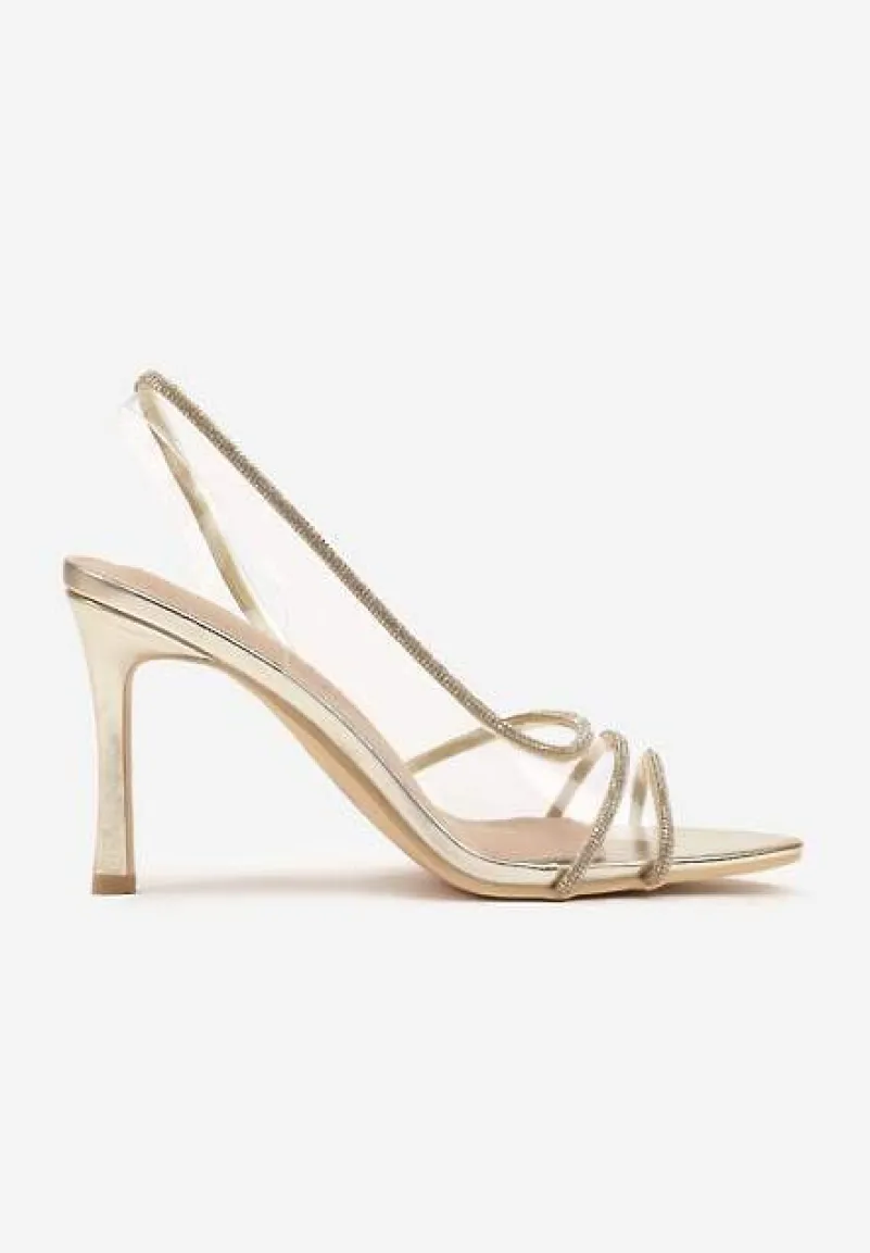 Złote Sandały Vices na Szpilce ze Skórzaną Wkładką z Cyrkoniami Arnellie