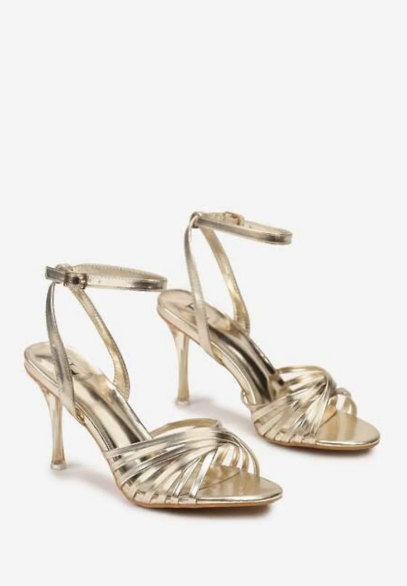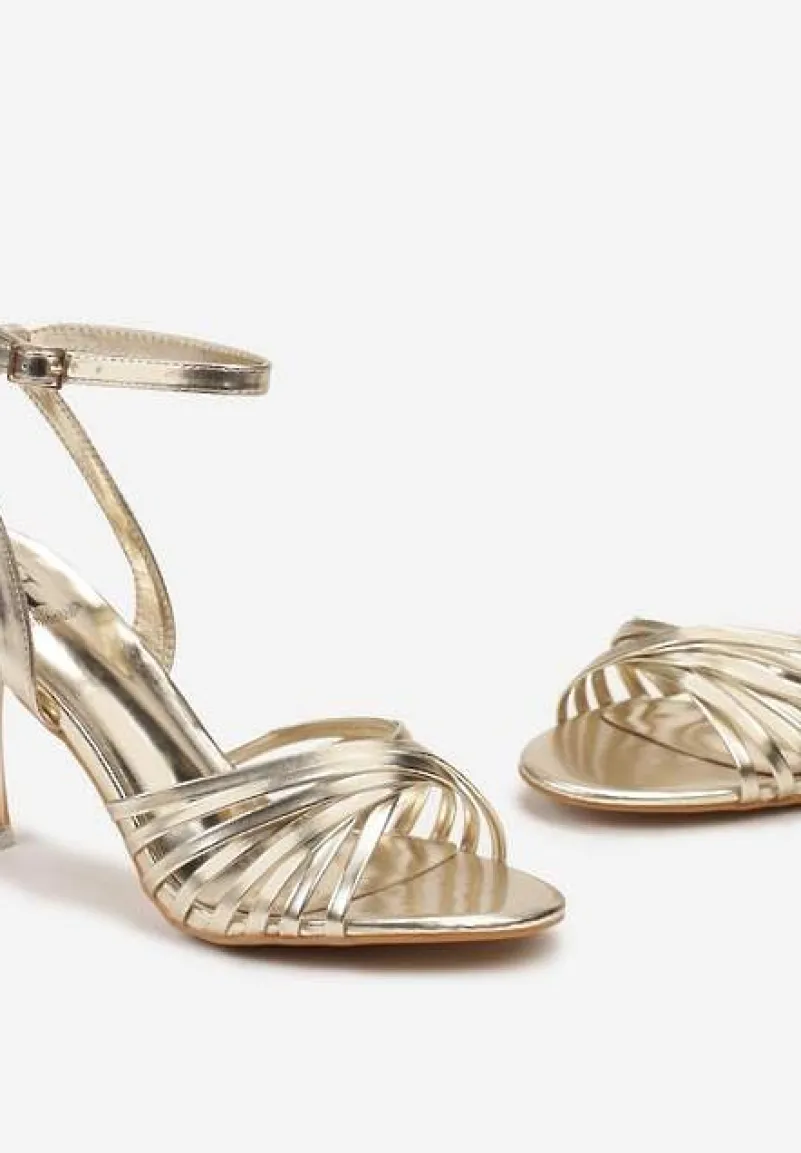 Złote Sandały Vices z Ozdobnymi Paseczkami na Szpilce Zapinane na Sprzączkę Poriena