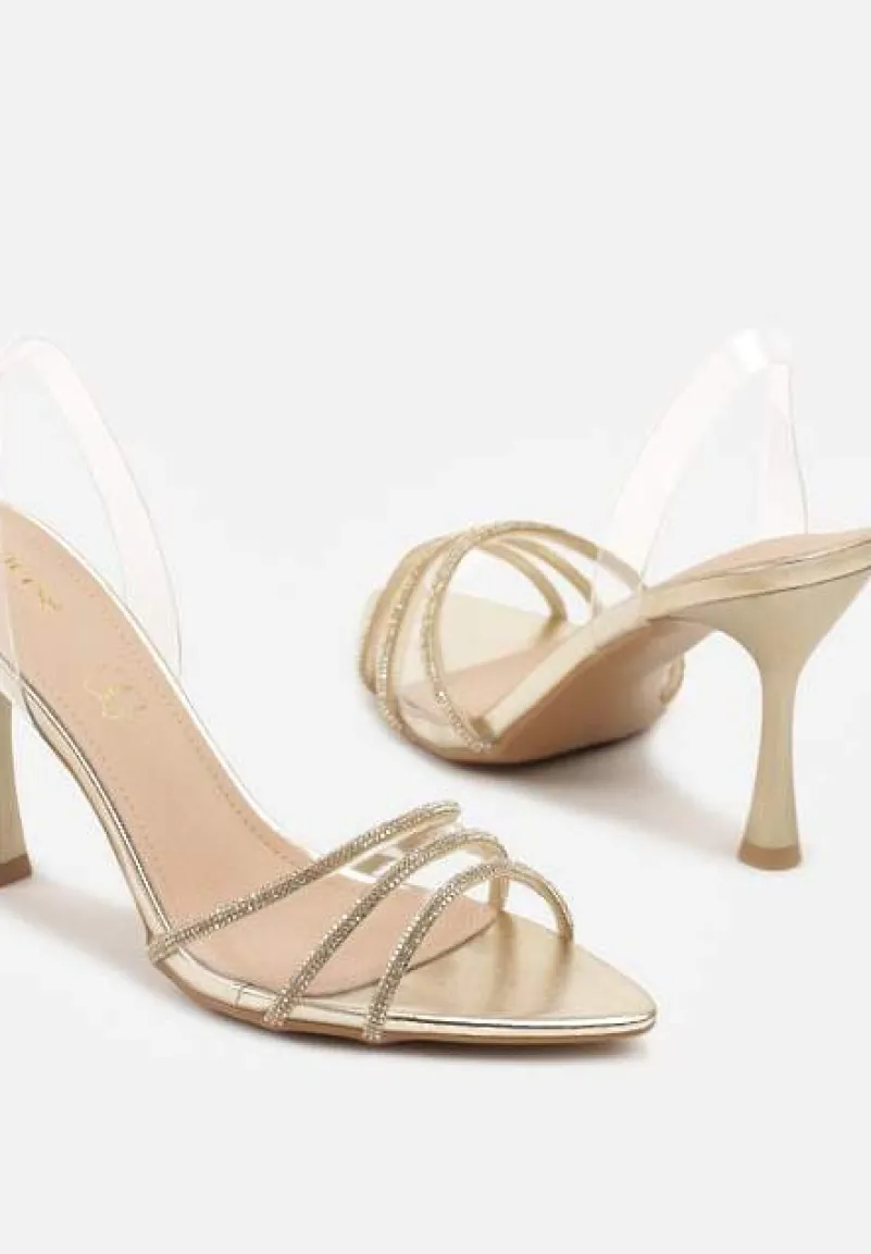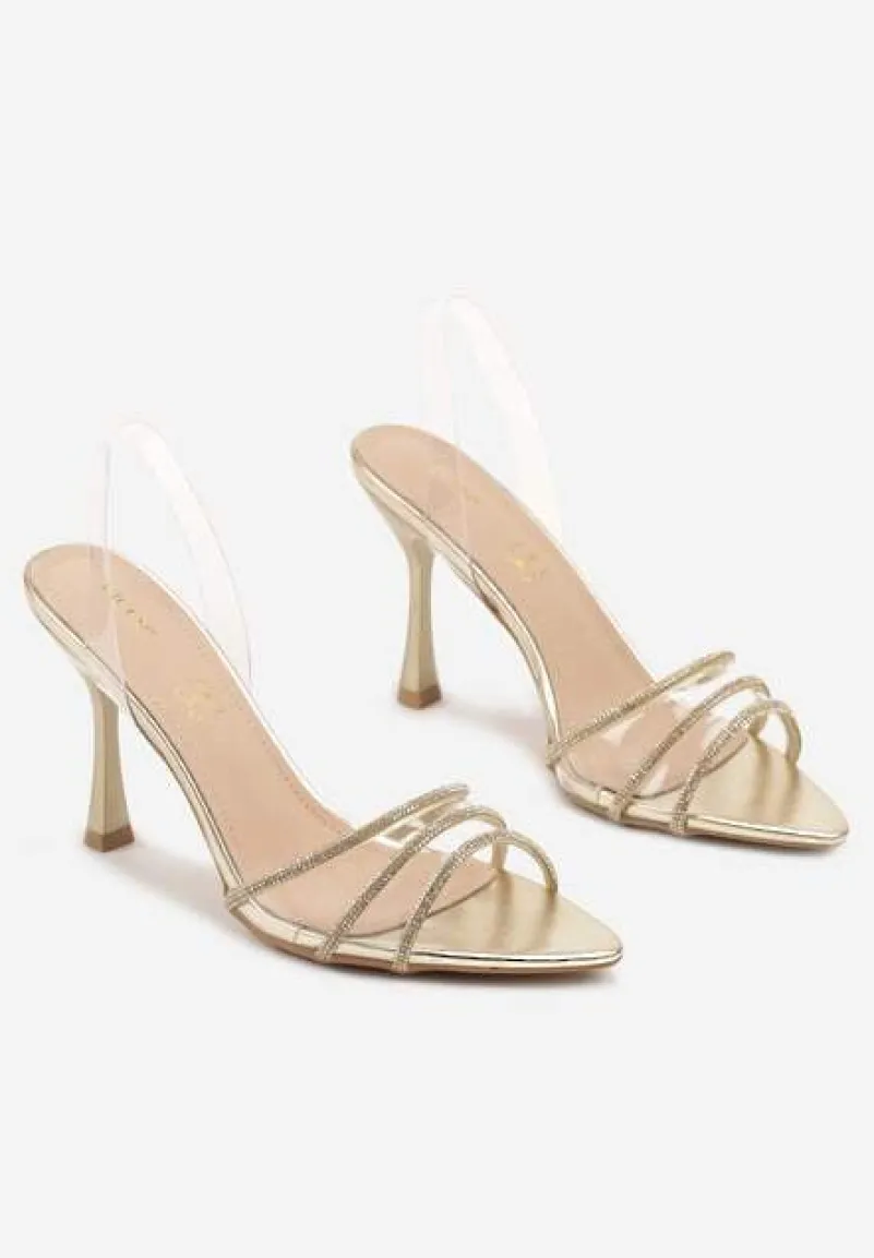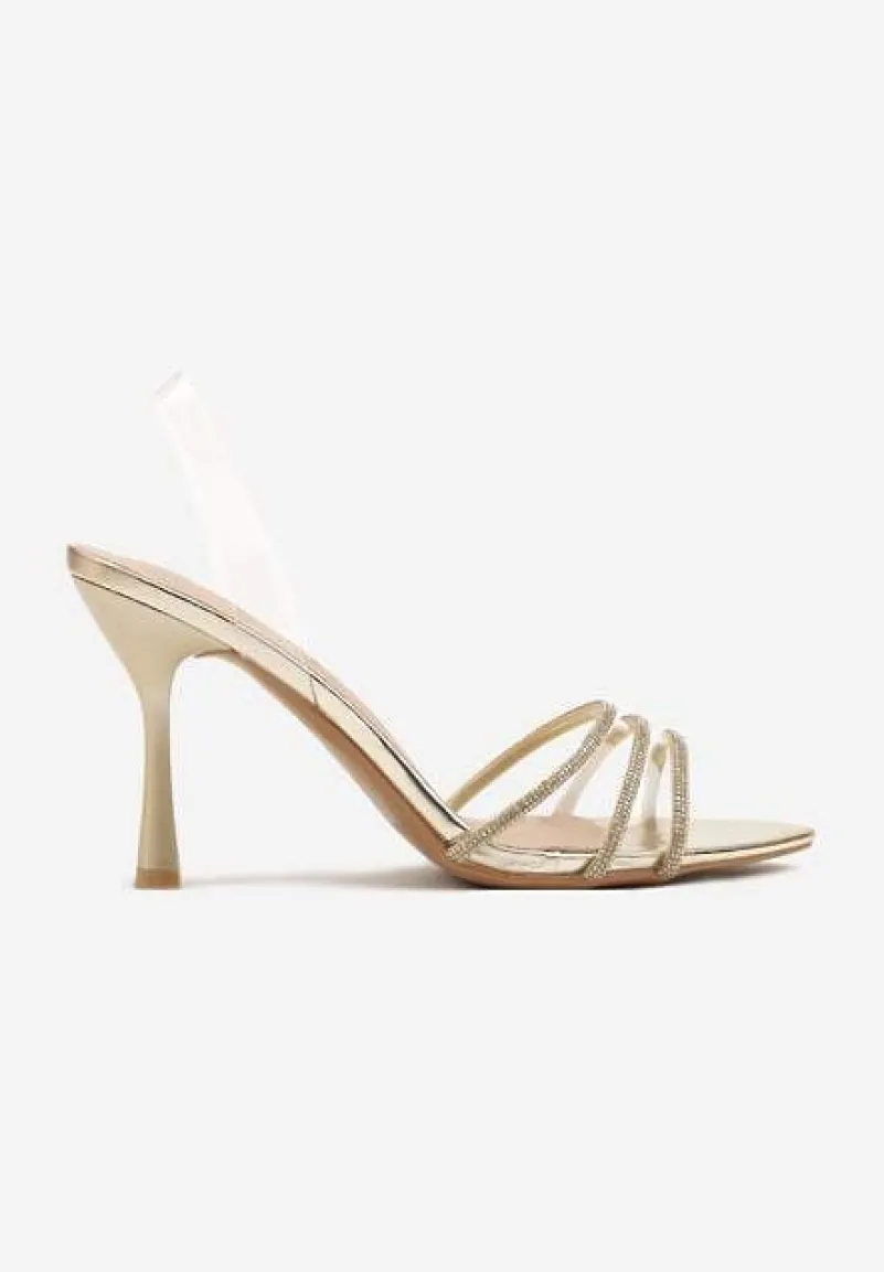 Złote Sandały Vices ze Skórzaną Wkładką Transparentną Cholewką i Cyrkoniami Novarissea