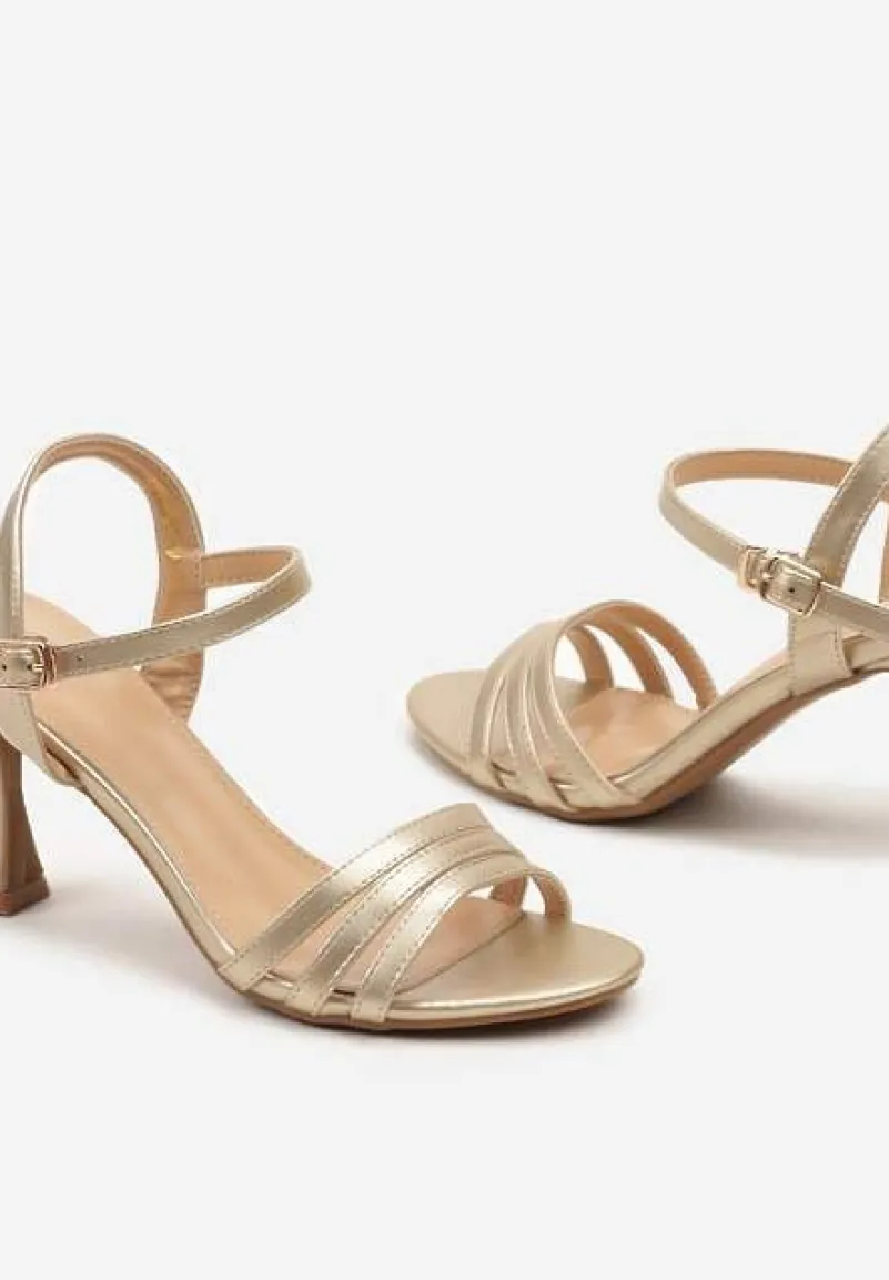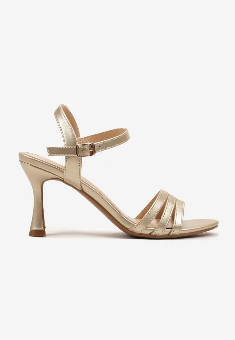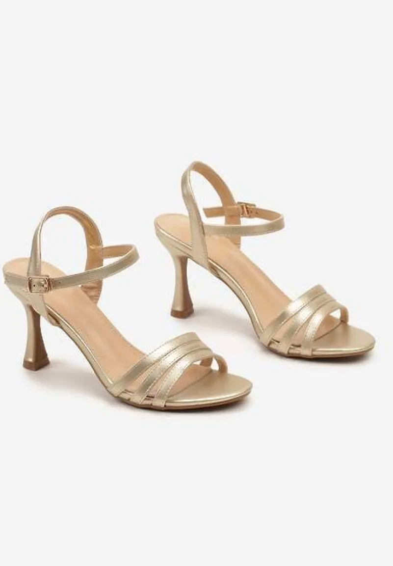 Złote Sandały z Ekoskóry na Szpilce Zapinane na Sprzączkę Ploemis