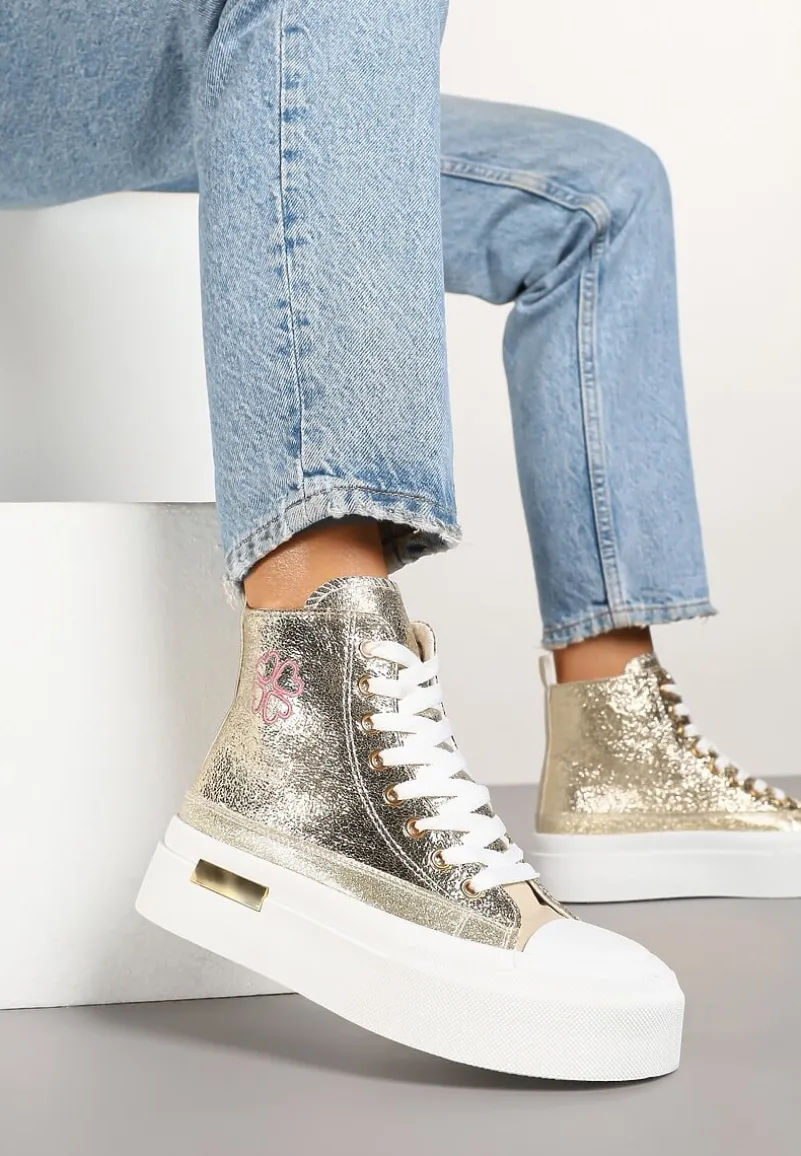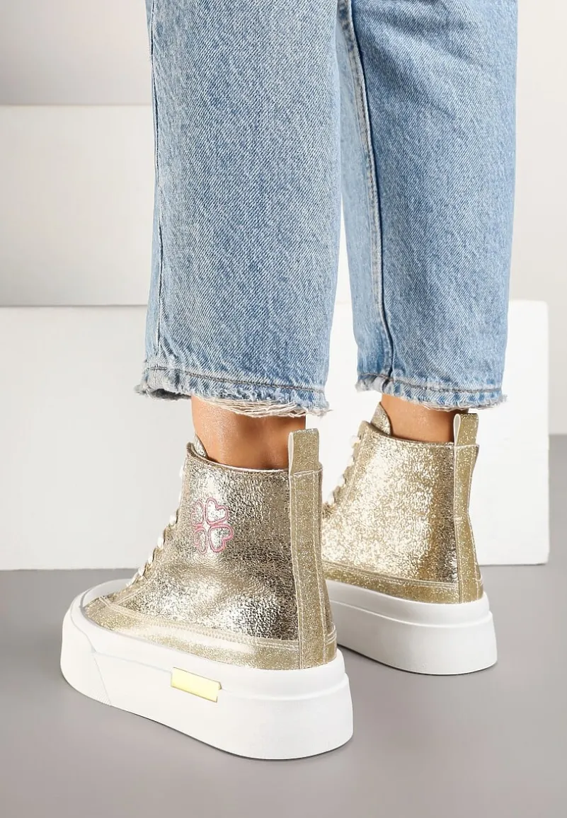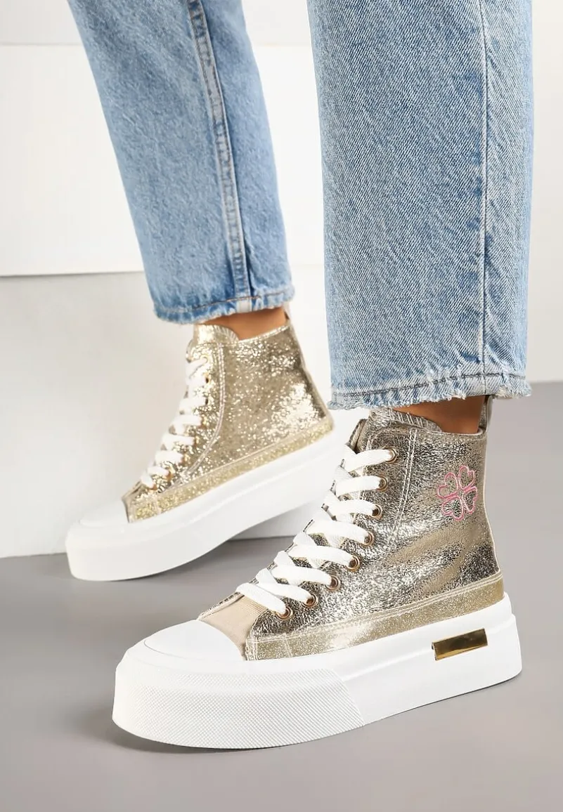 Trampki na Platformie z Wysoką Cholewką Ozdobione Haftem Fonaril to idealne połączenie wyrazistego stylu. Te sneakersy na grubej platformie, z zaokrąglonym noskiem i praktycznym sznurowaniem, zaskoczą Cię unikalnymi haftami, które dodają im oryginalności i charakteru. Doskonale sprawdzą się w casualowych stylizacjach z jeansami i prostym t-shirtem, a dodając elegancki płaszcz i dużą torebkę, stworzysz wyjątkowy look na wieczorne spotkanie. Idealne dla kobiet, które lubią przyciągać spojrzenia i chcą pozostać na czołowej linii modowych trendów.