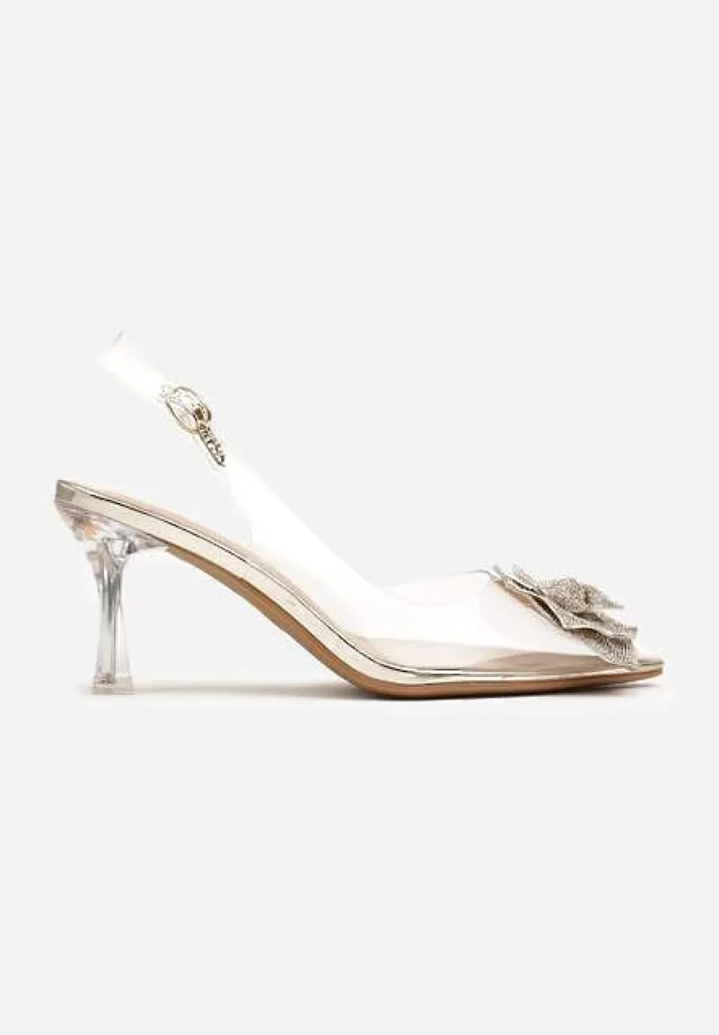 Przezroczyste Sandały na Obcasie Alariva z błyszczącym kwiatkiem to połączenie elegancji i nowoczesności, które z pewnością przyciągnie spojrzenia. Ich klepsydrowy obcas subtelnie unosi sylwetkę, dodając jej lekkości i wdzięku. Błyszczące zdobienie dodaje im wyjątkowego charakteru. Na co dzień zestaw je ze zwiewną sukienką i małą kopertówką, a na wieczorne wyjście z odważniejszą stylizacją — np. eleganckim kombinezonem — by zachwycać na każdej imprezie.
