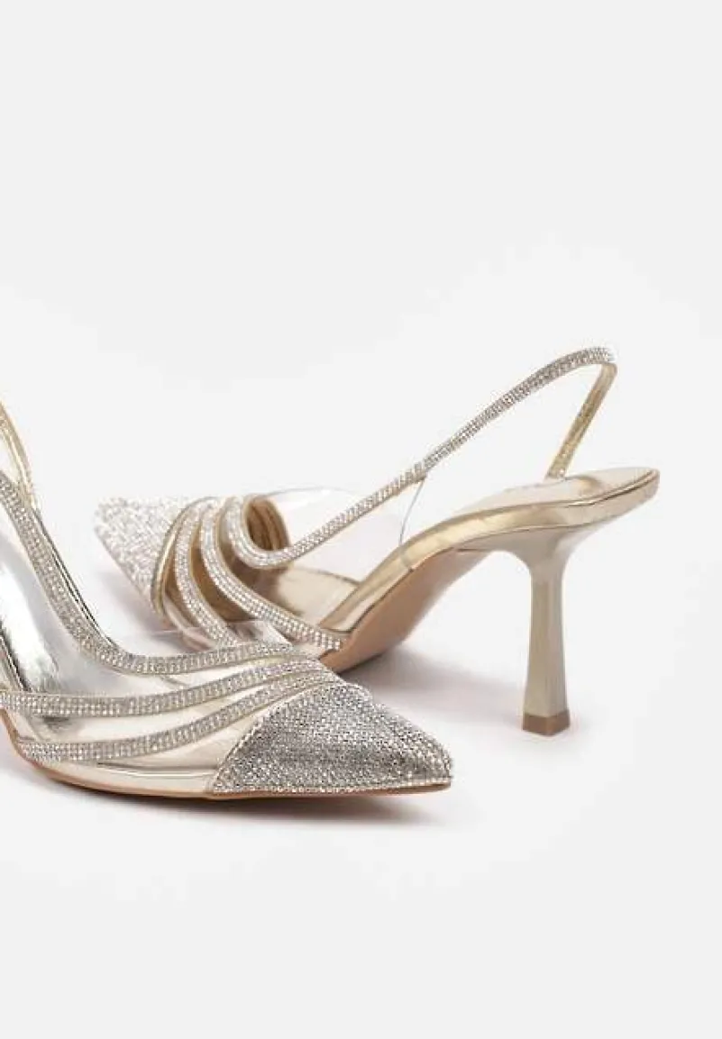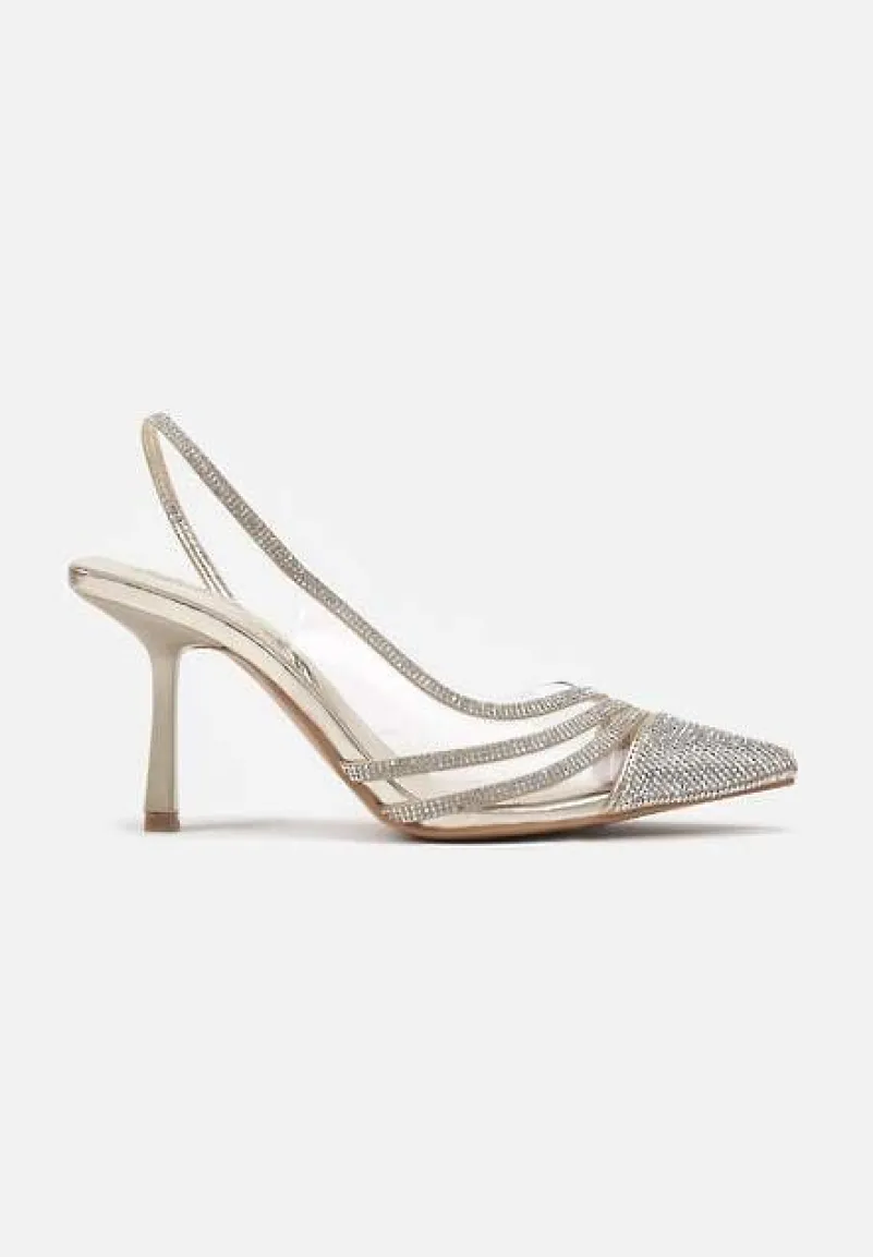 Złote Transparentne Sandały na Szpilce z Błyszczącymi Cyrkoniami Ivelina