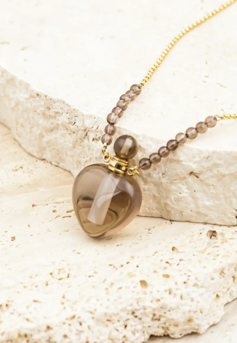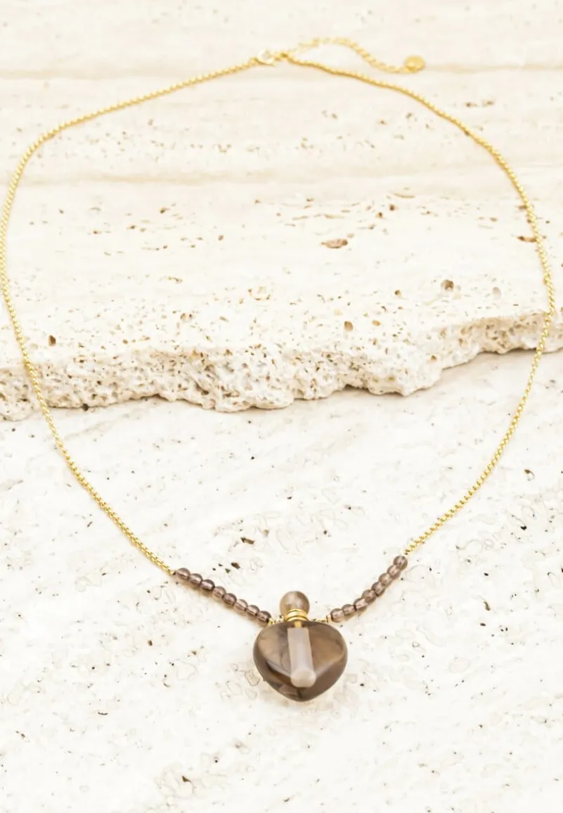 Naszyjnik Yeve na cienkim łańcuszku, ozdobiony drobnymi koralikami i kryształową zawieszką. Wykonany ze stali nierdzewnej.