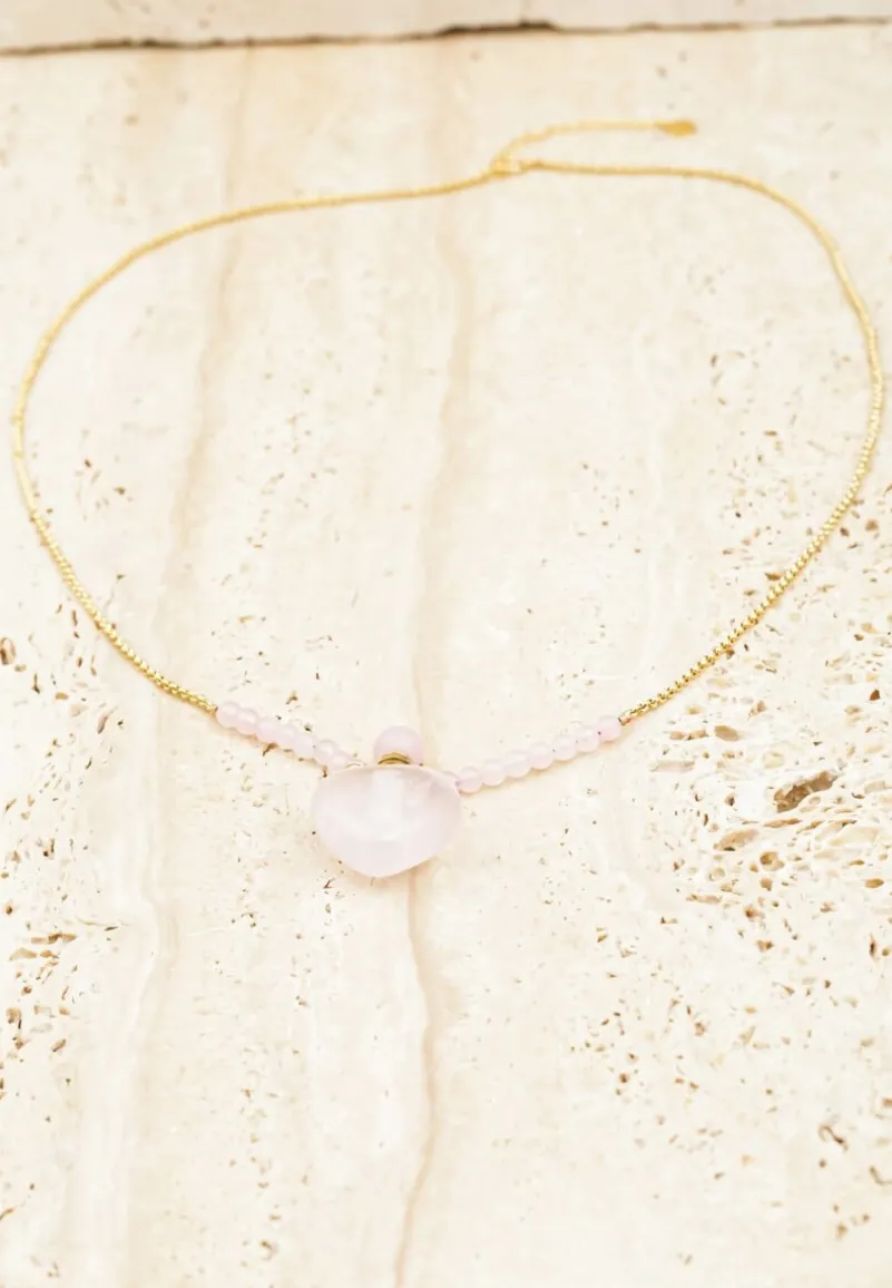 Naszyjnik Yeve na cienkim łańcuszku, ozdobiony drobnymi koralikami i kryształową zawieszką. Wykonany ze stali nierdzewnej.