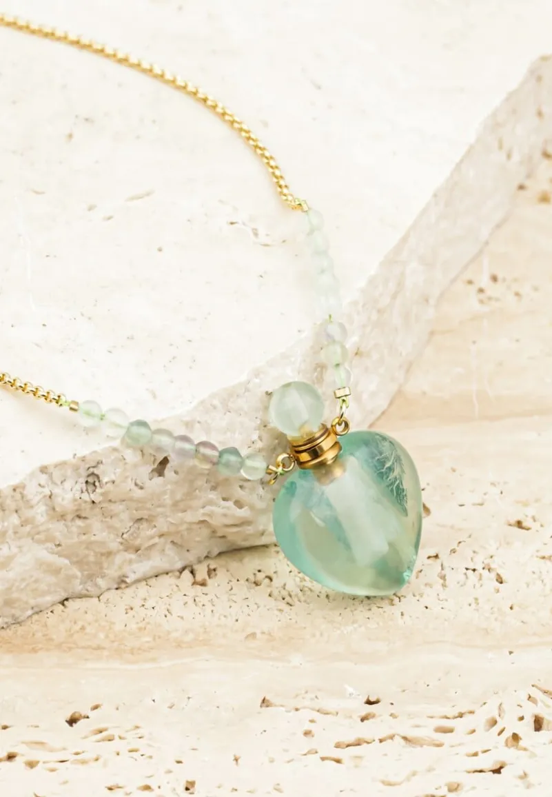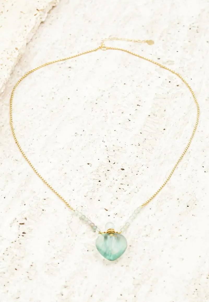 Naszyjnik Yeve na cienkim łańcuszku, ozdobiony drobnymi koralikami i kryształową zawieszką. Wykonany ze stali nierdzewnej.
