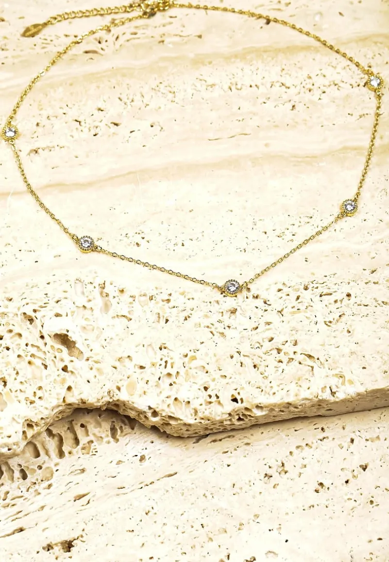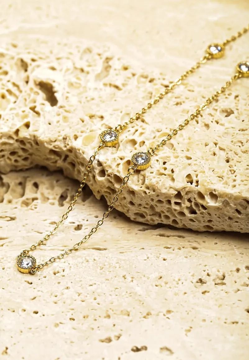 Naszyjnik Ozdobiony Cyrkoniami Cleomara z regulacją ze stali nierdzewnej to niezwykła biżuteria, która doskonale uzupełni każdą stylizację. Idealny na sezon wiosenno-letni, delikatny łańcuszek subtelnie oplata szyję, a cyrkonie dodają blasku każdej kobiecej kreacji. Połącz go z białą koszulą i jeansami na casualowy look lub z elegancką sukienką na wieczorne wyjście – efekt WOW gwarantowany!