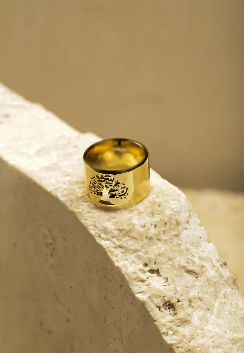 Pierścionek Szeroki z Motywem Drzewa Emazia to idealna propozycja dla tych, które pragną wprowadzić odrobinę oryginalności do swojej biżuteryjnej kolekcji. Ten szeroki pierścionek wyróżnia się nie tylko pięknym wzorem drzewa, ale również elastycznością, dzięki której świetnie dopasowuje się do każdej dłoni, dodając jej wyjątkowego charakteru. Doskonale komponuje się zarówno z codziennym, casualowym outfit’em—na przykład z delikatną bluzką i jeansami, jak i elegancką stylizacją na wieczorne wyjście, w towarzystwie klasycznej sukienki i szpilek. Wykonany ze stali nierdzewnej.