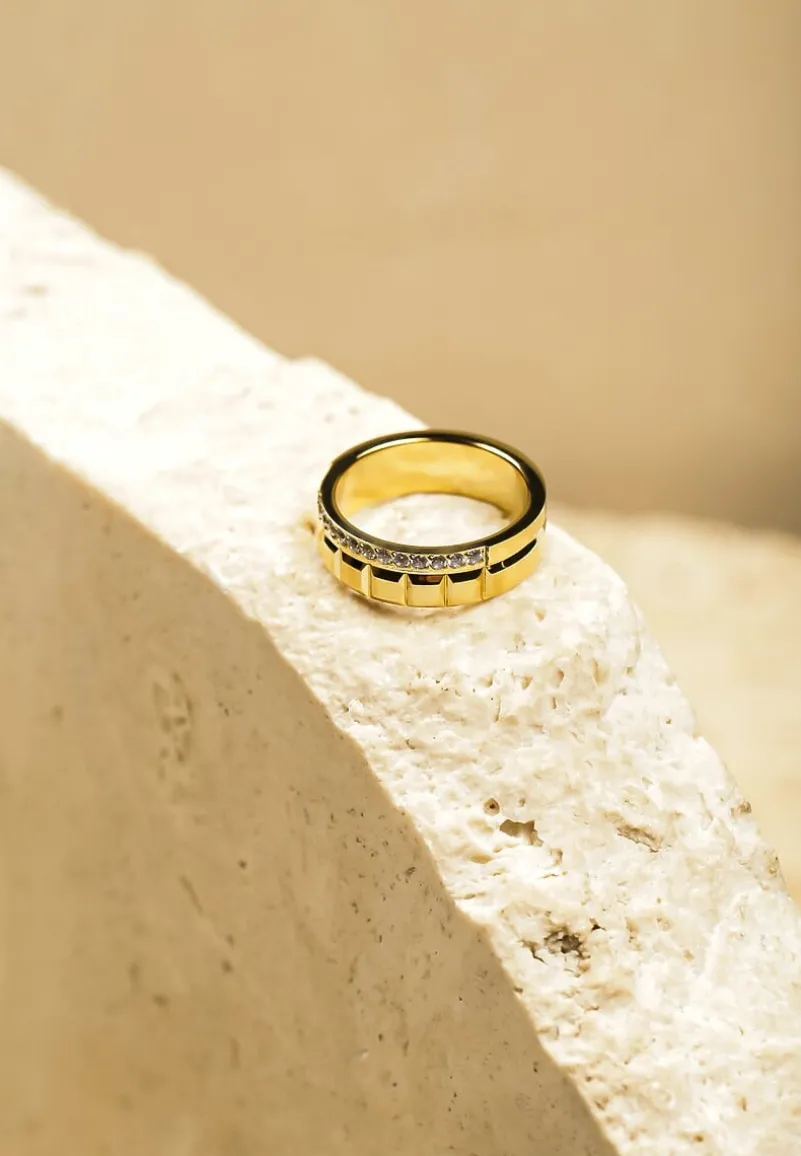Odkryj wyjątkowy urok Tłoczonego Pierścionka Ozdobionego Cyrkoniami Irriene ze stali nierdzewnej, który z łatwością uzupełni każdą stylizację! Jego fason doda blasku zarówno minimalistycznym, codziennym zestawom, jak i eleganckim kreacjom, na przykład zestawiony z satynową sukienką i klasycznymi szpilkami. Przyciągnij spojrzenia i poczuj się pewnie w każdej chwili!