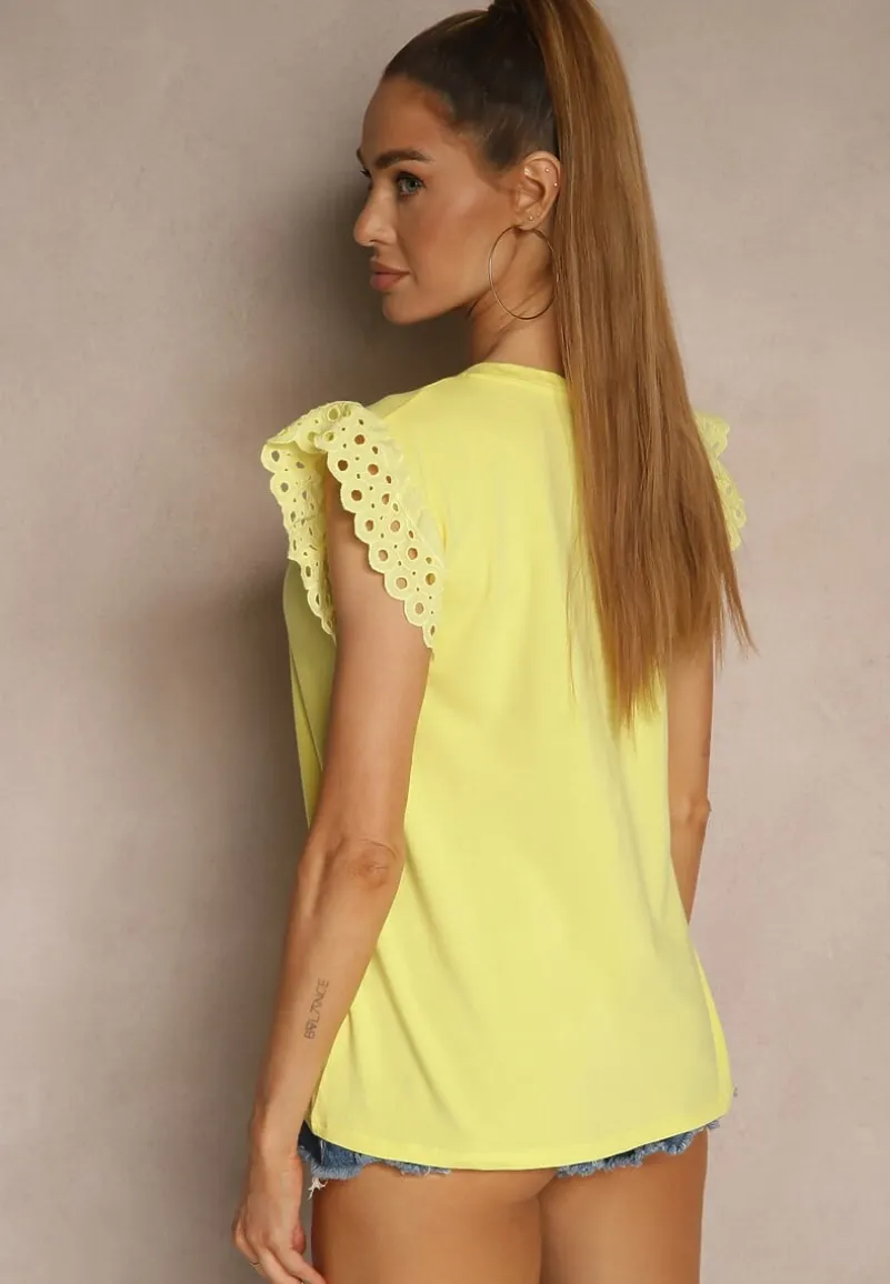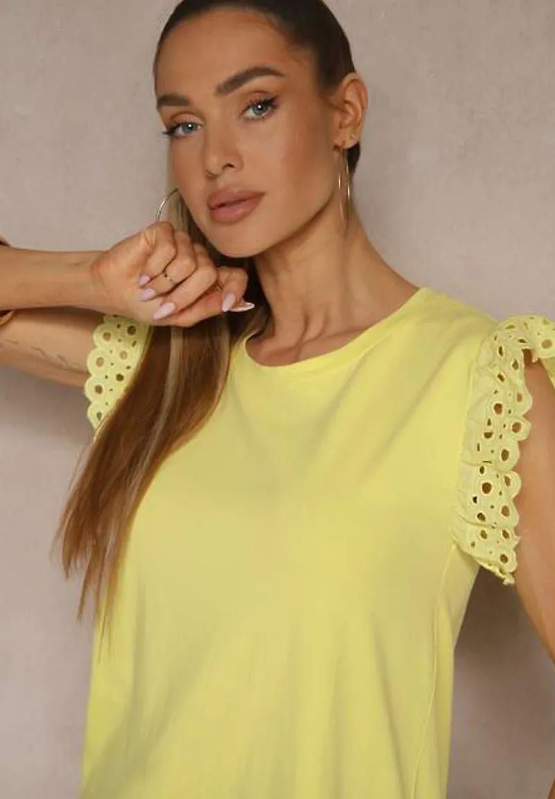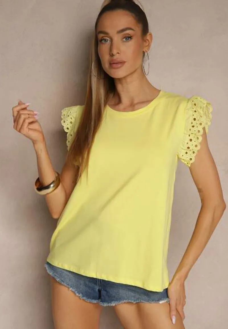 Oto bawełniana bluzka z krótkim rękawem Voanira, która doskonale wpisuje się w aktualne trendy mody. Z delikatnymi ażurowymi falbankami na rękawach, dodaje lekkości i romantyzmu każdej stylizacji. Jej prosty, ale efektowny krój sprawdzi się zarówno na co dzień, jak i podczas formalnych spotkań — wystarczy zestawić ją z eleganckimi spodniami i szpilkami, aby stworzyć idealny look na każdą okazję. Wykonana z bawełny.