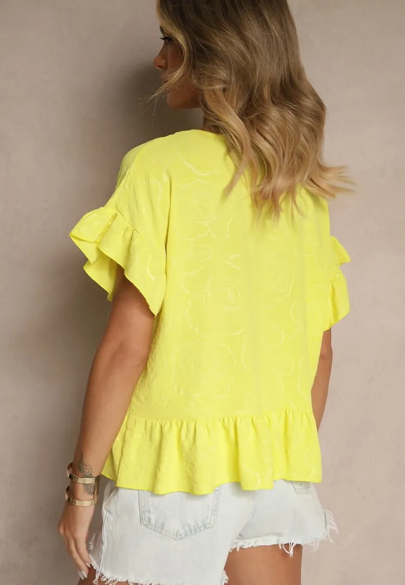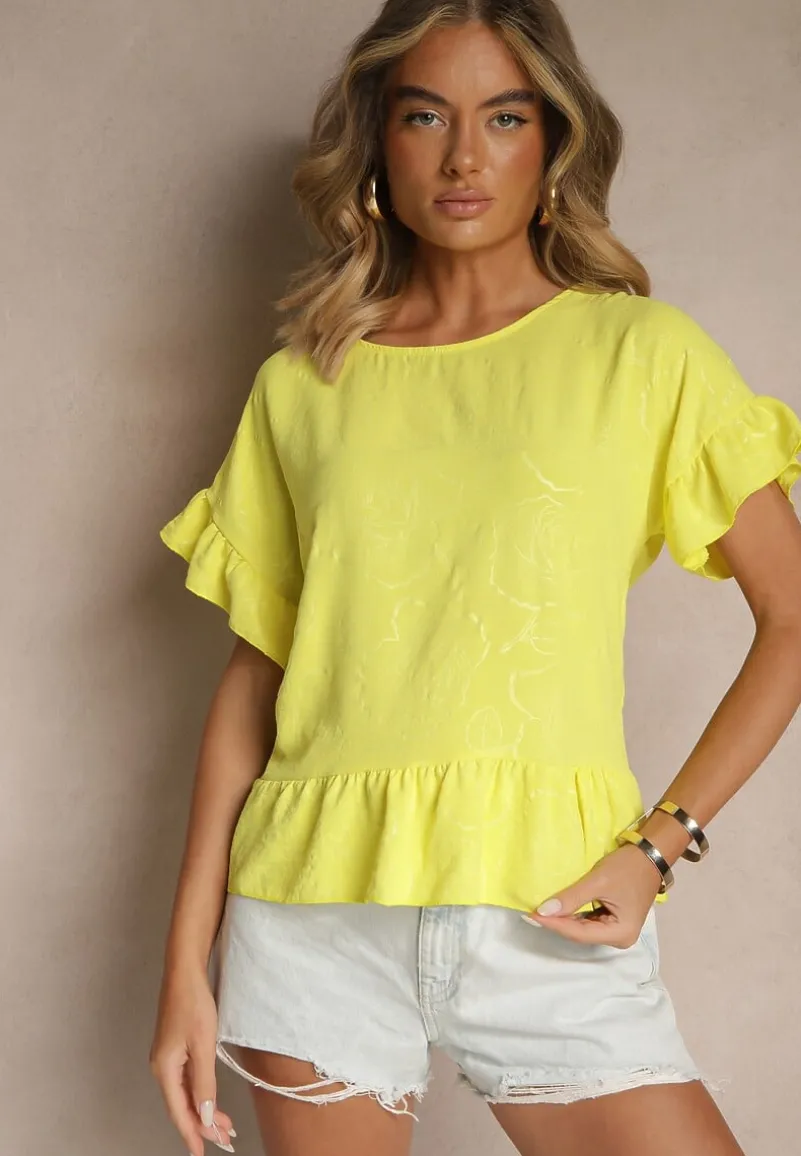 Bluzka Oversize Liriele to must-have w Twojej garderobie, która wpisuje się w najnowsze trendy modowe. Jej swobodny krój i falbany dodają lekkości, a subtelny dekolt w kształcie okrągłym pięknie eksponuje szyję. W połączeniu z jeansami stworzy idealny outfit na co dzień.