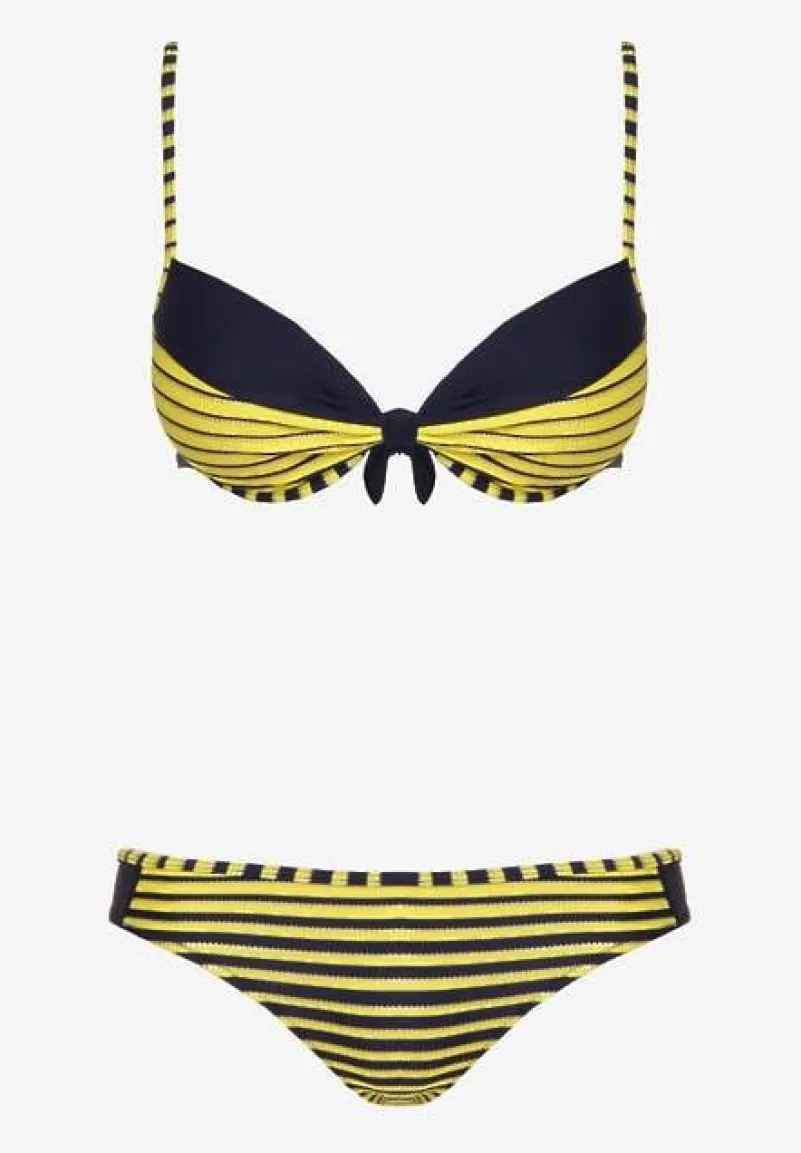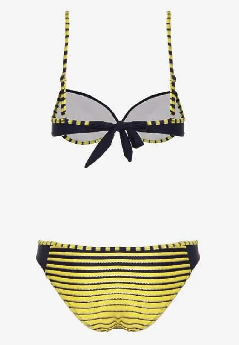 Żółte Bikini Dwuczęściowe w Paski Biustonosz i Figi Wialisa