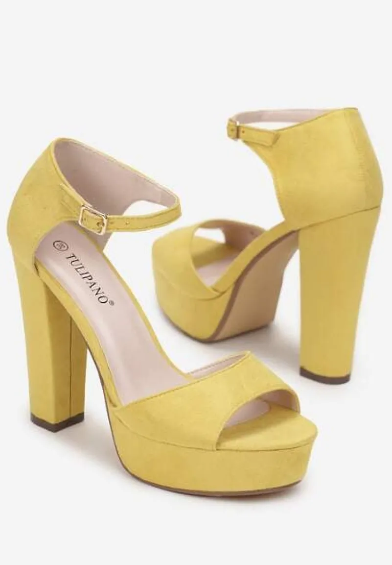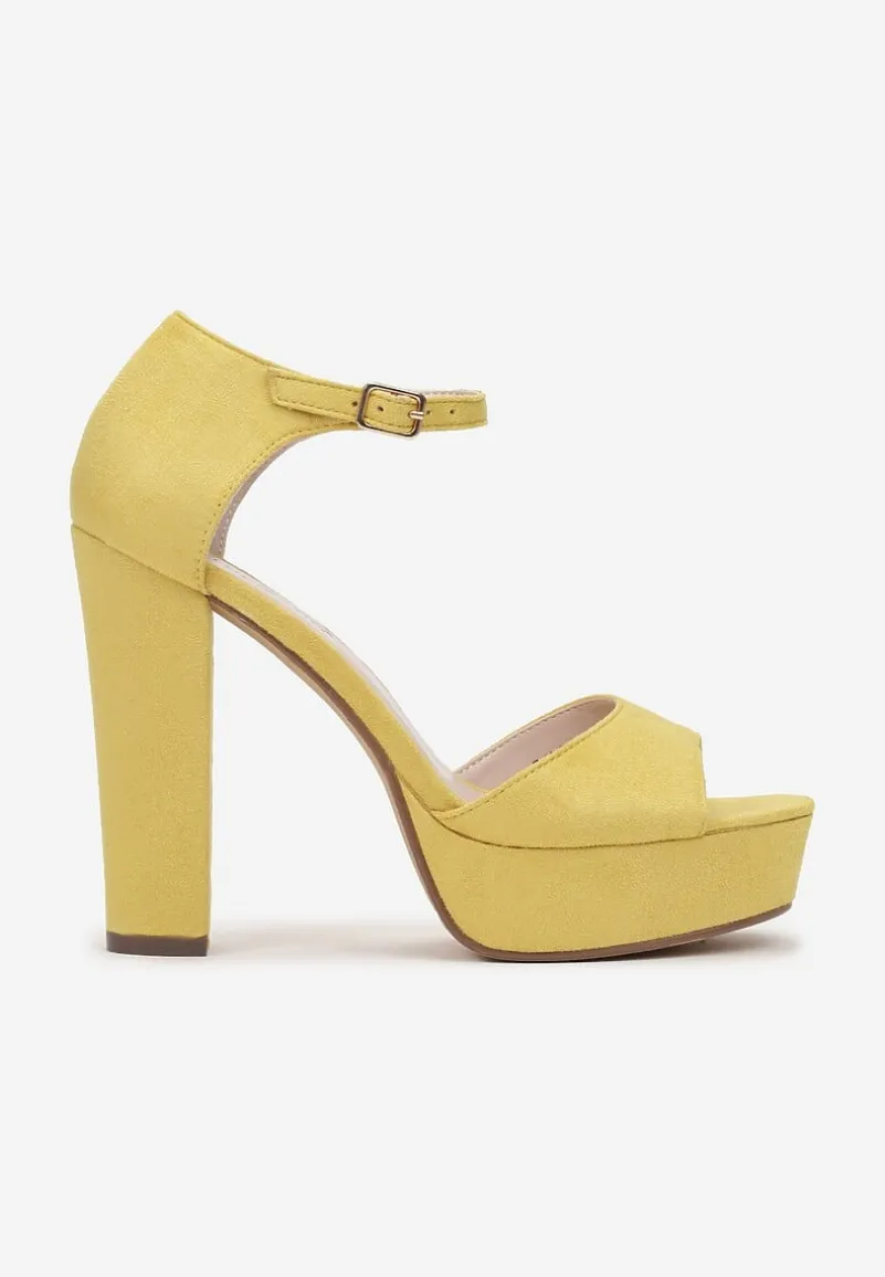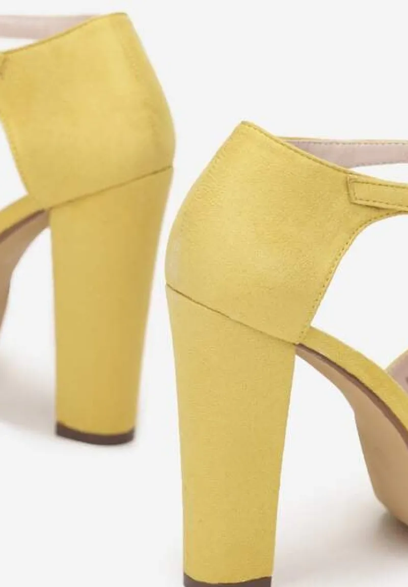 Żółte Sandały na Słupku i Platformie z Imitacji Zamszu Yalenia