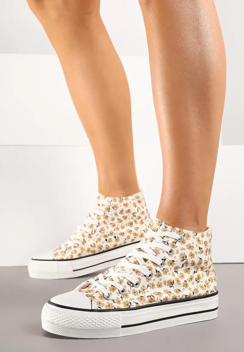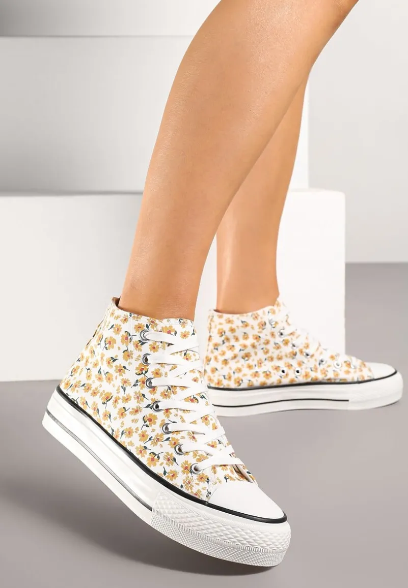 Trampki z Wysoką Cholewką Zdobione Kwiatowym Printem Folellia to must-have dla każdej modowej entuzjastki! Te wyjątkowe trampki łączą w sobie casualowy urok z modnym kwiatowym wzorem, który nadaje im świeżości i lekkości. Idealnie sprawdzą się jako dodatek do codziennych stylizacji z jeansową spódnicą i luźnym T-shirtem na spotkanie z przyjaciółmi lub z dzianinową sukienką i trenczem na weekendowy brunch — w obu przypadkach zyskasz efektowny look! Wysoka cholewka i klasyczne sznurowanie umożliwiają łatwe dopasowanie. Zaleca się zakup większego rozmiaru.