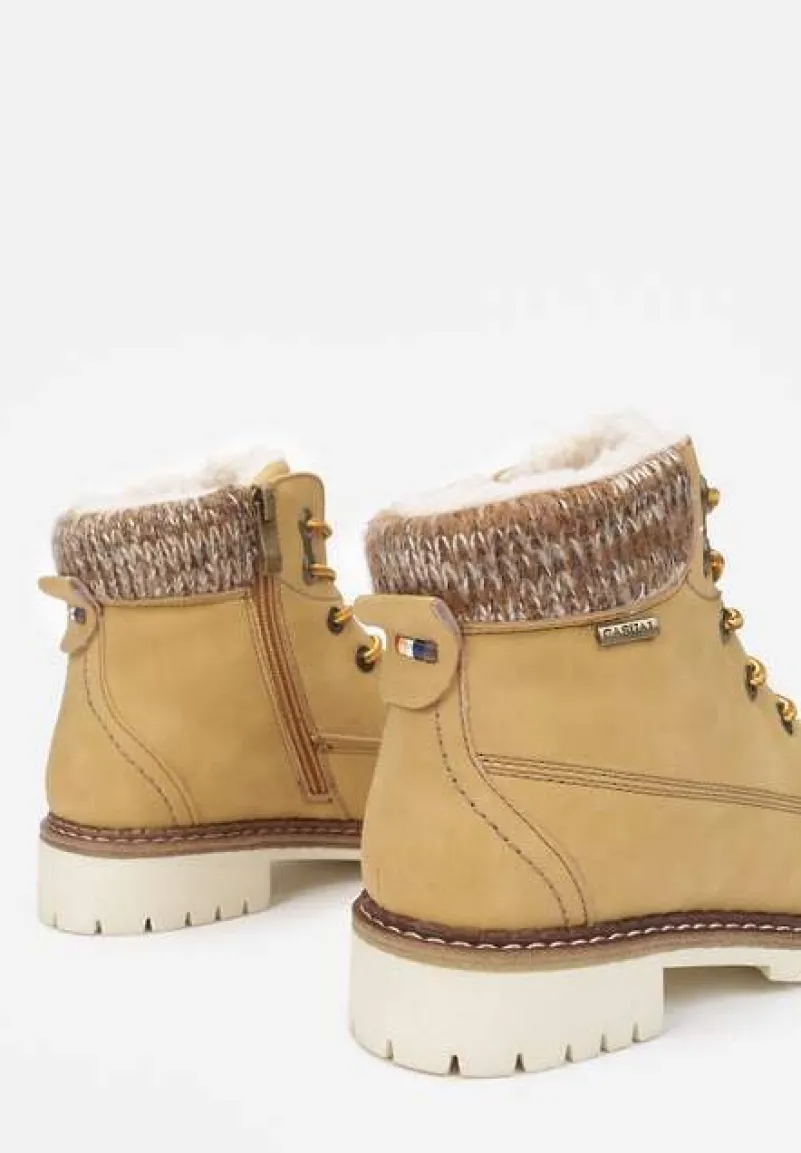 Traperki Evirima to must-have tej zimy dla każdej miłośniczki mody. Dzianinowa wstawka dodaje butom charakteru i pozwala na indywidualne dopasowanie do stylizacji. Płaski obcas gwarantuje komfort noszenia, futrzana wyściółka sprawdzi się podczas chłodniejszych dni, a zapięcie na suwak ułatwia zakładanie. Noś je z legginsami i oversize’owym swetrem na co dzień lub z elegancką spódnicą i skórzaną kurtką na wieczorne wyjście.