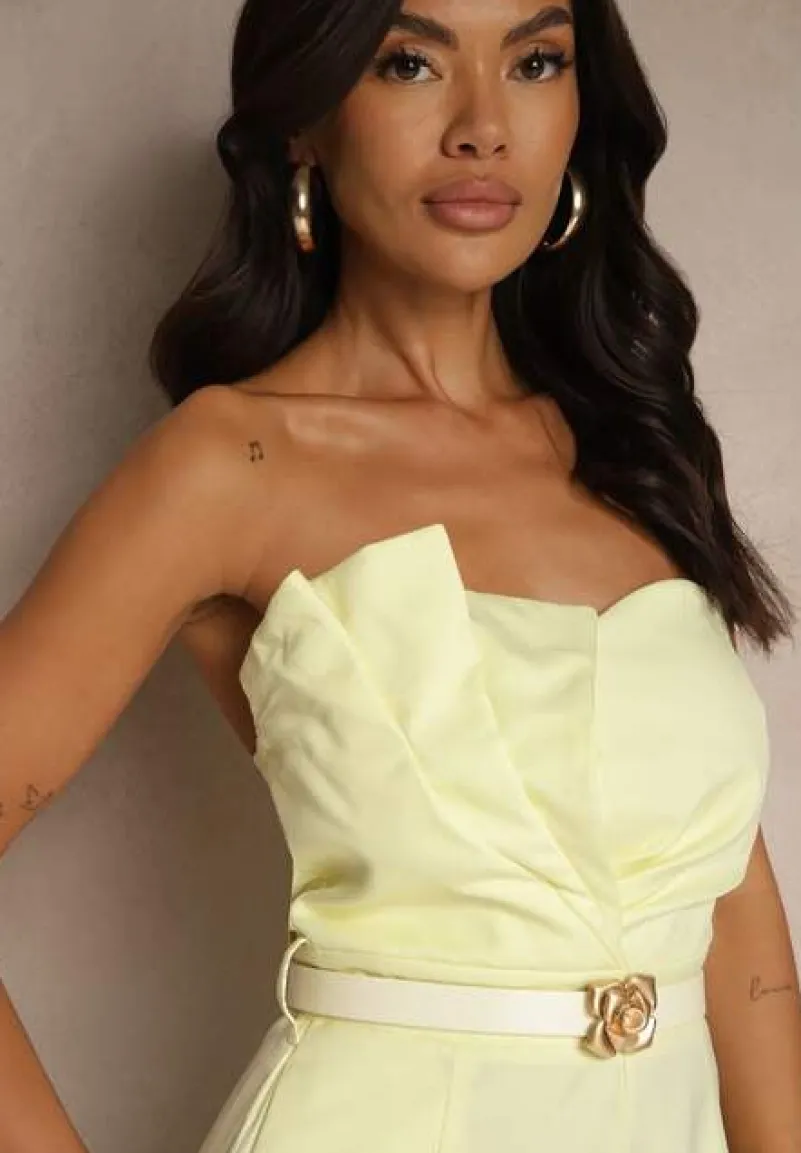 Żółty Kombinezon Bandeau z Paskiem z Klamrą Zdobiony Zakładkami Silianea